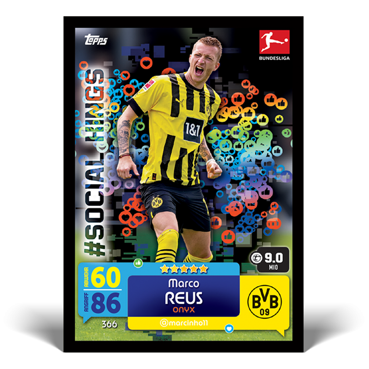 La petite boîte en métal ONYX contient 3 cartes SOCIAL KINGS exclusives 365. Marco Friedl (SV Werder Bremen)366. Marco Reus (Borussia Dortmund)