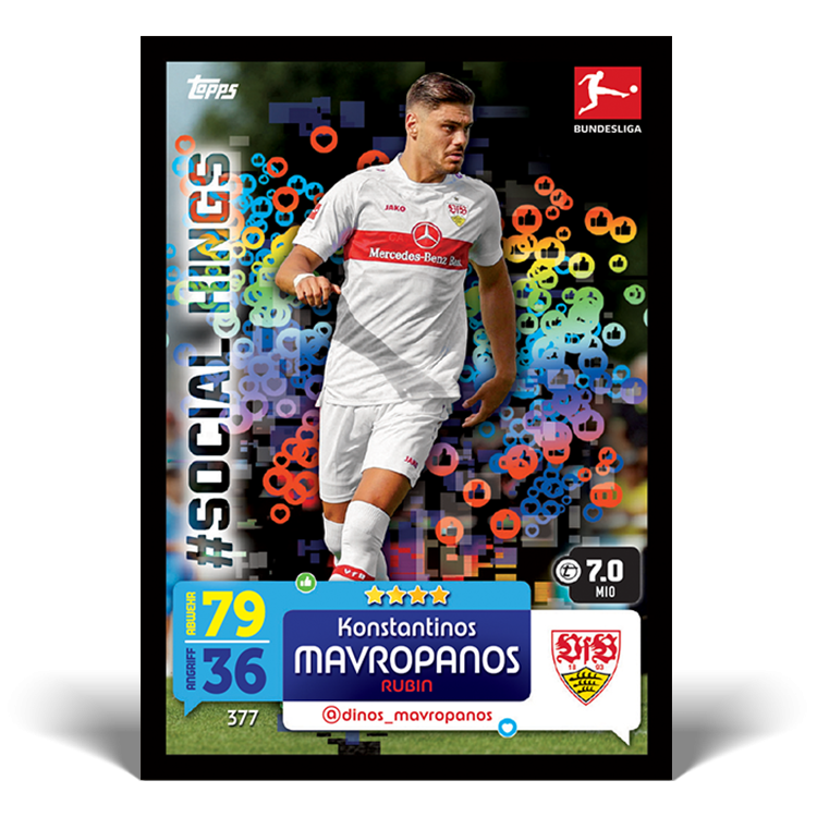 La petite boîte en métal RUBIN contient 3 cartes SOCIAL KINGS exclusives 376. Simon Terodde (FC Schalke 04)377. Konstantinos Mavropanos (VfB Stuttgart)