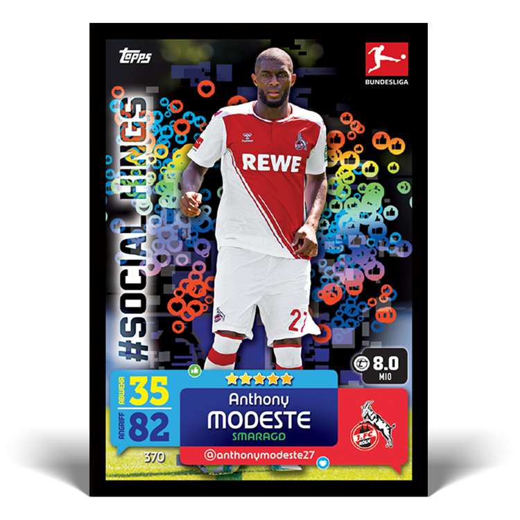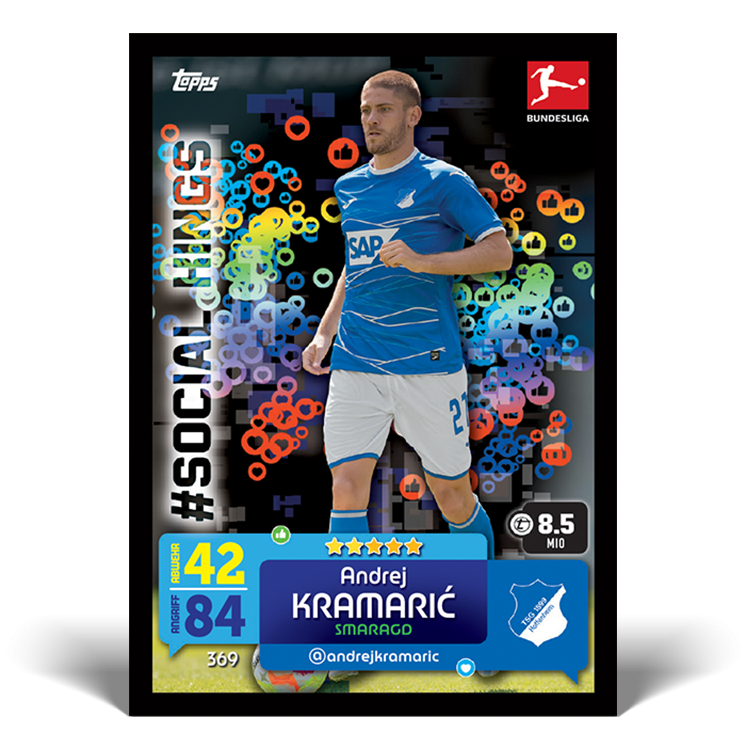 La petite boîte en métal SMARAGD contient 3 cartes SOCIAL KINGS exclusives 369. Andrej Kramarić (TSG Hoffenheim)370. Anthony Modeste (1. FC Köln)