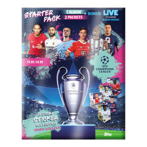 LA CHECK-LIST (en cours) 1. Topps Logo 2. UEFA Champions League Trophy 3. 2022/23 Official UCL Matchballs TEAM OF THE SEASON 4. Thibaut Courtois (Real Madrid CF) 5. Trent Alexander-Arnold (Liverpool) 6. Antonio Rüdiger (Chelsea) 7. Virgil van Dijk (Liverpool) 8. Andrew Robertson (Liverpool) 9. Kevin De Bruyne (Manchester City) 10. Fabinho (Liverpool) 11. Luka Modrić (Real Madrid CF) 12. Kylian Mbappé (Paris Saint-Germain) 13. Karim Benzema (Real Madrid CF) 14. Vinícius Júnior (Real Madrid CF) 15. Karim Benzema (Real Madrid CF) 2021/22 UEFA WOMEN'S CHAMPIONS LEAGUE STANDOUT PERFORMERS 16. Pauline Peyraud-Magnin (Juventus) 17. Lisa Boattin (Juventus) 18. Saki Kumagai (FC Bayern München) 19. Mapi León (FC Barcelona) 20. Ashley Lawrence (Paris Saint-Germain) 21. Aitana Bonmatí (FC Barcelona) 22. Patri Guijarro (FC Barcelona) 23. Lena Oberdorf (VfL Wolfsburg) 24. Alexia Putellas (FC Barcelona) 25. Tabea Waßmuth (VfL Wolfsburg) 26. Marie-Antoinette Katoto (Paris Saint-Germain)UEFA CHAMPIONS LEAGUE 27. Mike Maignan (AC Milan) 28. Davide Calabria (AC Milan) Captain 29. Fikayo Tomori (AC Milan) 30. Fodé Ballo-Touré (AC Milan) 31. Theo Hernández (AC Milan) 32. Simon Kjær (AC Milan) 33. Pierre Kalulu (AC Milan) 34. Rade Krunić (AC Milan) 35. Ismaël Bennacer (AC Milan) 36. Sandro Tonali (AC Milan) 37. Alexis Saelemaekers (AC Milan) 38. Brahim Díaz (AC Milan) 39. Rafael Leão (AC Milan) 40. Olivier Giroud (AC Milan) Golden Goalscorer 41. Ante Rebić (AC Milan) 42. Divock Origi (AC Milan) 43. Tommaso Pobega (AC Milan) Next Gen 44. Brahim Díaz / Rafael Leão (AC Milan) Double Impact 45. Remko Pasveer (AFC Ajax) 46. Daley Blind (AFC Ajax) 47. Calvin Bassey (AFC Ajax) 48. Jurriën Timber (AFC Ajax) 49. Owen Wijndal (AFC Ajax) 50. Perr Schuurs (AFC Ajax) 51. Edson Álvarez (AFC Ajax) 52. Davy Klaassen (AFC Ajax) 53. Kenneth Taylor (AFC Ajax) 54. Mohammed Kudus (AFC Ajax) 55. Mohamed Ihattaren (AFC Ajax) 56. Brian Brobbey (AFC Ajax) Golden Goalscorer 57. Steven Berghuis (AFC Ajax) 58. Antony (AFC Ajax) 59. Steven Bergwijn (AFC Ajax) 60. Dušan Tadić (AFC Ajax) Captain 61. Devyne Rensch (AFC Ajax) Next Gen 62. Mohammed Kudus / Antony (AFC Ajax) Double Impact 63. Jan Oblak (Atlético de Madrid) 64. Reinildo (Atlético de Madrid) 65. Renan Lodi (Atlético de Madrid) 66. Felipe (Atlético de Madrid) 67. José María Giménez (Atlético de Madrid) 68. Mario Hermoso (Atlético de Madrid) 69. Stefan Savić (Atlético de Madrid) 70. Geoffrey Kondogbia (Atlético de Madrid) 71. Marcos Llorente (Atlético de Madrid) 72. Rodrigo De Paul (Atlético de Madrid) 73. Koke (Atlético de Madrid) - Captain 74. Yannick Carrasco (Atlético de Madrid) 75. Antoine Griezmann (Atlético de Madrid) 76. Ángel Correa (Atlético de Madrid) 77. Thomas Lemar (Atlético de Madrid) 78. João Félix (Atlético de Madrid) Golden Goalscorer 79. Matheus Cunha (Atlético de Madrid) Next Gen 80. Reinildo / Renan Lodi (Atlético de Madrid) Double Impact 81. Lukáš Hrádecký (Bayer 04 Leverkusen) Captain 82. Edmond Tapsoba (Bayer 04 Leverkusen) 83. Jonathan Tah (Bayer 04 Leverkusen) 84. Odilon Kossounou (Bayer 04 Leverkusen) 85. Mitchel Bakker (Bayer 04 Leverkusen) 86. Jeremie Frimpong (Bayer 04 Leverkusen) 87. Timothy Fosu-Mensah (Bayer 04 Leverkusen) 88. Kerem Demirbay (Bayer 04 Leverkusen) 89. Charles Aránguiz (Bayer 04 Leverkusen) 90. Florian Wirtz (Bayer 04 Leverkusen) 91. Robert Andrich (Bayer 04 Leverkusen) 92. Exequiel Palacios (Bayer 04 Leverkusen) 93. Moussa Diaby (Bayer 04 Leverkusen) 94. Amine Adli (Bayer 04 Leverkusen) 95. Patrick Schick (Bayer 04 Leverkusen) Golden Goalscorer 96. Sardar Azmoun (Bayer 04 Leverkusen) 97. Piero Hincapié (Bayer 04 Leverkusen) Next Gen 98. Moussa Diaby / Florian Wirtz (Bayer 04 Leverkusen) Double Impact 99. Gregor Kobel (Borussia Dortmund) 100. Mats Hummels (Borussia Dortmund) 101. Raphaël Guerreiro (Borussia Dortmund) 102. Niklas Süle (Borussia Dortmund) 103. Thomas Meunier (Borussia Dortmund) 104. Nico Schlotterbeck (Borussia Dortmund) 105. Mahmoud Dahoud (Borussia Dortmund) 106. Emre Can (Borussia Dortmund) 107. Marco Reus (Borussia Dortmund) Captain 108. Jude Bellingham (Borussia Dortmund) 109. Giovanni Reyna (Borussia Dortmund) 110. Julian Brandt (Borussia Dortmund) 111. Sébastien Haller (Borussia Dortmund) Golden Goalscorer 112. Donyell Malen (Borussia Dortmund) 113. Jamie Bynoe-Gittens (Borussia Dortmund) 1st Sticker 114. Karim Adeyemi (Borussia Dortmund) 115. Tom Rothe (Borussia Dortmund) Next Gen 116. Jude Bellingham / Giovanni Reyna (Borussia Dortmund) Double Impact 117. Joe Hart (Celtic) 118. Carl Starfelt (Celtic) 119. Anthony Ralston (Celtic) 120. Josip Juranović (Celtic) 121. Stephen Welsh (Celtic) 122. Greg Taylor (Celtic) 123. Cameron Carter-Vickers (Celtic) 124. Callum McGregor (Celtic) Captain 125. Reo Hatate (Celtic) 126. David Turnbull (Celtic) 127. James Forrest (Celtic) 128. Matt O'Riley (Celtic) 129. Daizen Maeda (Celtic) 130. Kyogo Furuhashi (Celtic) 131. Giorgios Giakoumakis (Celtic) Golden Goalscorer 132. Albian Ajeti (Celtic) 133. Liel Abada (Celtic) Next Gen 134. Daizen Maeda / Kyogo Furuhashi (Celtic) Double Impact 135. Edouard Mendy (Chelsea) 136. César Azpilicueta (Chelsea) 137. Thiago Silva (Chelsea) 138. Kalidou Koulibaly (Chelsea) 139. Trevoh Chalobah (Chelsea) 140. Ben Chilwell (Chelsea) 141. Reece James (Chelsea) 142. Malang Sarr (Chelsea) 143. N'Golo Kanté (Chelsea) 144. Jorginho (Chelsea) 145. Mason Mount (Chelsea) 146. Mateo Kovačić (Chelsea) 147. Kai Havertz (Chelsea) 148. Raheem Sterling (Chelsea) 149. Christian Pulisic (Chelsea) 150. Timo Werner (Chelsea) Golden Goalscorer 151. Callum Hudson-Odoi (Chelsea) Next Gen 152. Mason Mount / Kai Havertz (Chelsea) Double Impact 153. Simon Mignolet (Club Brugge) 154. Denis Odoi (Club Brugge) 155. Brandon Mechele (Club Brugge) 156. Eduard Sobol (Club Brugge) 157. Bjorn Meijer (Club Brugge) 158. Stanley Nsoki (Club Brugge) 159. Clinton Mata (Club Brugge) 160. Casper Nielsen (Club Brugge) 161. 