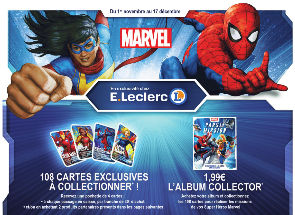 Pour la seconde année consécutive, les magasins E.Leclerc lancent une collection de cartes exclusives issues de la franchise Marvel, intitulée PARS EN MISSION.