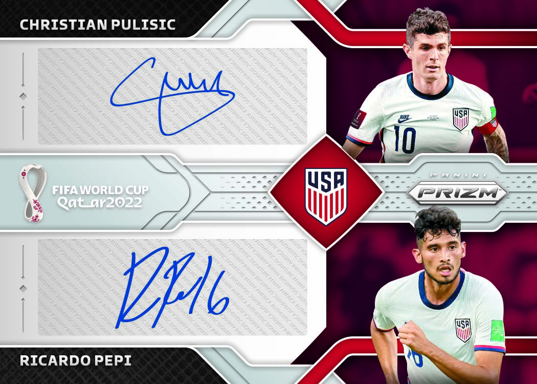 INSERT / CONNECTIONS 1. Angel Di Maria/Lionel Messi - Argentina 2. Eden Hazard/Thorgan Hazard - Belgium 3. Matthijs de Ligt/Virgil van Dijk - Netherlands 4. Jeremy Sarmiento/Moises Caicedo - Ecuador 5. Bukayo Saka/Jude Bellingham - England 6. Dani Alves/Thiago Silva - Brazil 7. Bruno Fernandes/Cristiano Ronaldo - Portugal 8. Paul Pogba/Raphael Varane - France 9. Gavi/Pedri - Spain 10. Joshua Kimmich/Leon Goretzka - Germany 11. Christian Pulisic/Giovanni Reyna - United States 12. Declan Rice/Kalvin Phillips - England 13. Romelu Lukaku/Thibaut Courtois - Belgium 14. Sergino Dest/Yunus Musah - United States 15. Daichi Kamada/Daizen Maeda - Japan 16. Alisson/Ederson - Brazil 17. Christian Eriksen/Kasper Schmeichel - Denmark 18. Lucas Hernandez/Theo Hernandez - France 19. Edinson Cavani/Luis Suarez - Uruguay 20. Mason Mount/Phil Foden - England 21. Frenkie de Jong/Ryan Gravenberch - Netherlands 22. Leandro Paredes/Rodrigo de Paul - Argentina 23. Ivan Perisic/Marcelo Brozovic - Croatia 24. Joao Felix/Rafael Leao - Portugal 25. Jonas Hofmann/Matthias Ginter - Germany 26. Gianluca Busio/Ricardo Pepi - United States 27. Alex Sandro/Danilo - Brazil 28. Koke/Sergio Busquets - Spain 29. Kevin De Bruyne/Youri Tielemans - Belgium 30. Dusan Vlahovic/Sergej Milinkovic-Savic - Serbia INSERT / GLOBAL REACH 1. Philippe Coutinho - Brazil 2. Marc-Andre ter Stegen - Germany 3. Alphonso Davies - Canada 4. Steven Berghuis - Netherlands 5. Romelu Lukaku - Belgium 6. In-Beom Hwang - Korea Republic 7. Trent Alexander-Arnold - England 8. Moussa Diaby - France 9. Andre Onana - Cameroon 10. Lionel Messi - Argentina 11. Federico Valverde - Uruguay 12. Lucas Hernandez - France 13. Filip Kostic - Serbia 14. Fabinho - Brazil 15. Rodri - Spain 16. Youri Tielemans - Belgium 17. Cristiano Ronaldo - Portugal 18. Jonathan Tah - Germany 19. Luka Modric - Croatia 20. Ederson - Brazil 21. Thomas Partey - Ghana 22. Joaquin Correa - Argentina 23. Wataru Endo - Japan 24. Munir - Morocco 25. Ilkay Gundogan - Germany 26. Andreas Christensen - Denmark 27. Georginio Wijnaldum - Netherlands 28. Thibaut Courtois - Belgium 29. Mason Mount - England 30. Josip Brekalo - Croatia 31. Zack Steffen - United States 32. Paulo Dybala - Argentina 33. Jadon Sancho - England 34. Jonathan David - Canada INSERT / MANGA 1. Julian Alvarez - Argentina 2. Jeremy Doku - Belgium 3. Charles De Ketelaere - Belgium 4. Gabriel Martinelli - Brazil 5. Mason Mount - England 6. Phil Foden - England 7. Bukayo Saka - England 8. Paulo Dybala - Argentina 9. Manuel Neuer - Germany 10. Karim Adeyemi - Germany 11. Heung-Min Son - Korea Republic 12. Hirving Lozano - Mexico 13. Matthijs de Ligt - Netherlands 14. Virgil van Dijk - Netherlands 15. Robert Lewandowski - Poland 16. Diogo Jota - Portugal 17. Dusan Vlahovic - Serbia 18. Pedri - Spain 19. Gavi - Spain 20. Mikel Oyarzabal - Spain 21. Christian Pulisic - United States 22. Ricardo Pepi - United States 23. Weston McKennie - United States 24. Darwin Nunez - Uruguay 25. Jurgen Klinsmann - Germany INSERT / NATIONAL LANDMARKS 1. Lautaro Martinez - Argentina 2. Romelu Lukaku - Belgium 3. Vinicius Jr. - Brazil 4. Andre-Frank Zambo Anguissa - Cameroon 5. Alphonso Davies - Canada 6. Ivan Perisic - Croatia 7. Kasper Schmeichel - Denmark 8. Enner Valencia - Ecuador 9. Harry Kane - England 10. 11. Kai Havertz - Germany 12. Thomas Partey - Ghana 13. Sardar Azmoun - Iran 14. Takumi Minamino - Japan 15. Hee-chan Hwang - Korea Republic 16. Guillermo Ochoa - Mexico 17. Achraf Hakimi - Morocco 18. Frenkie de Jong - Netherlands 19. Piotr Zielinski - Poland 20. Bruno Fernandes - Portugal 21. Almoez Ali - Qatar 22. Salem Al-Dawsari - Saudi Arabia 23. Sadio Mané - Senegal 24. Sergej Milinkovic-Savic - Serbia 25. Pedri - Spain 26. Yann Sommer - Switzerland 27. Ellyes Skhiri - Tunisia 28. Christian Pulisic - United States 29. Federico Valverde - Uruguay 30. Mathew Ryan - Australia 31. Keylor Navas - Costa Rica 32. Gareth Bale - Wales