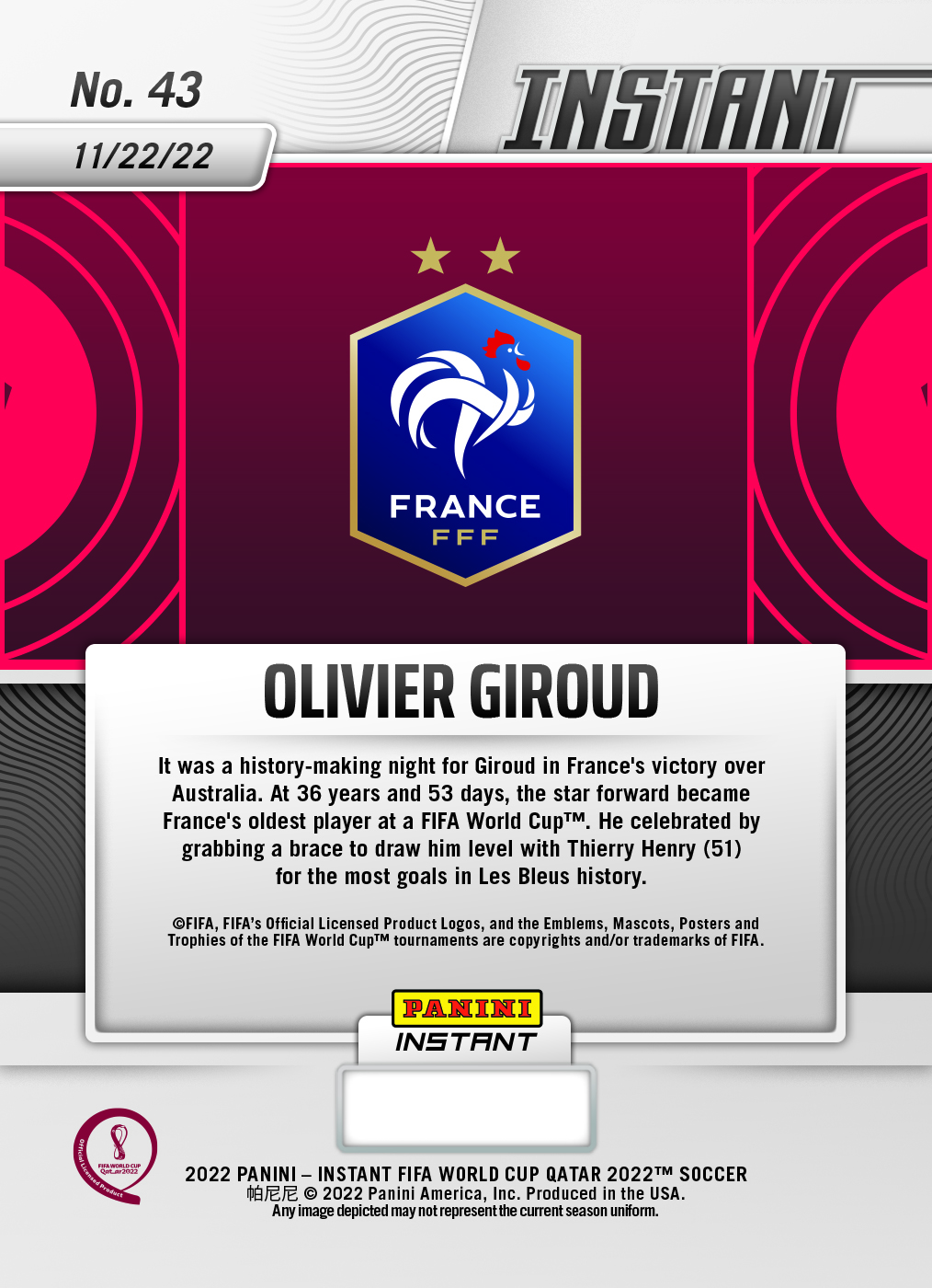Les galeries sont régulièrement mises à jour en fonction des ventes en ligne de Panini America (cliquer sur une photo pour l'agrandir)
