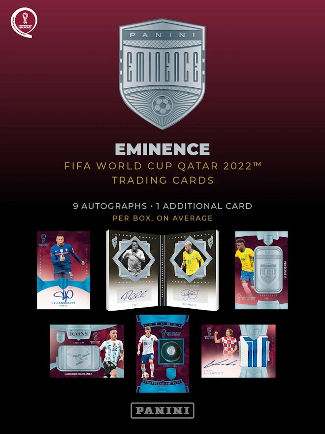 AUTOGRAPH / BANNER SIGNATURES 1. Adrien Rabiot - France 2. Alan Shearer - England 3. Ansu Fati - Spain 5. Carles Puyol - Spain 6. Christian Pulisic - United States 7. Cristiano Ronaldo - Portugal 8. David Beckham - England 9. David Trezeguet - France 10. Federico Valverde - Uruguay 11. Filippo Inzaghi - Italy 12. Frank Lampard - England 13. Gabriel Batistuta - Argentina 14. Gary Lineker - England 15. Harry Kane - England 16. Jack Grealish - England 17. Jens Lehmann - Germany 18. Jurgen Klinsmann - Germany 19. Kevin De Bruyne - Belgium 20. Lionel Messi - Argentina 22. Luka Modric - Croatia 23. Mason Mount - England 24. Mikel Oyarzabal - Spain 25. Neymar Jr - Brazil 26. Pelé - Brazil 27. Joao Felix - Portugal 28. Thierry Henry - France 30. Vinicius Jr. - Brazil AUTOGRAPH / CROWN JEWELS 1. Alan Shearer - England 2. Bernardo Silva - Portugal 3. Bruno Fernandes - Portugal 4. Christian Pulisic - United States 5. Cristiano Ronaldo - Portugal 6. David Beckham - England 7. Dennis Bergkamp - Netherlands 9. Edwin van der Sar - Netherlands 11. Filippo Inzaghi - Italy 12. Francesco Totti - Italy 13. Frank Lampard - England 14. Gabriel Batistuta - Argentina 15. Harry Kane - England 16. Ivan Perisic - Croatia 17. Jack Grealish - England 18. Jurgen Klinsmann - Germany 19. Kevin De Bruyne - Belgium 20. Kylian Mbappé - France 21. Landon Donovan - United States 22. Lionel Messi - Argentina 23. Luis Figo - Portugal 24. Luka Modric - Croatia 25. Marco Van Basten - Netherlands 26. Mason Mount - England 27. Mikel Oyarzabal - Spain 28. Neymar Jr - Brazil 30. Pedri - Spain 31. Pelé - Brazil 32. Joao Felix - Portugal 33. Raul - Spain 34. Ricardo Pepi - United States 35. Robin van Persie - Netherlands 36. Ruud van Nistelrooy - Netherlands 37. Sergino Dest - United States 38. Thierry Henry - France 39. Toni Kroos - Germany 40. Vinicius Jr. - Brazil AUTOGRAPH / DECADE DOMINANCE 1. Cristiano Ronaldo - Portugal 2. Dennis Bergkamp - Netherlands 3. Frank Lampard - England 4. Gabriel Batistuta - Argentina 5. Landon Donovan - United States 6. Lionel Messi - Argentina 7. Luis Figo - Portugal 8. Neymar Jr - Brazil 10. Pelé - Brazil 11. Thierry Henry - France AUTOGRAPH / ETCHED IN HISTORY 1. Bruno Fernandes - Portugal 2. Christian Pulisic - United States 3. Cristiano Ronaldo - Portugal 5. Federico Valverde - Uruguay 6. Harry Kane - England 7. Jack Grealish - England 8. Kevin De Bruyne - Belgium 9. Kylian Mbappé - France 10. Lionel Messi - Argentina 11. Luka Modric - Croatia 12. Mason Mount - England 13. Neymar Jr - Brazil 14. Pedri - Spain 15. Joao Felix - Portugal 16. Ricardo Pepi - United States 17. Vinicius Jr. - Brazil 18. Alan Shearer - England 19. Ansu Fati - Spain 20. David Beckham - England 21. Dennis Bergkamp - Netherlands 22. Filippo Inzaghi - Italy 23. Francesco Totti - Italy 24. Frank Lampard - England 25. Gabriel Batistuta - Argentina 26. Jurgen Klinsmann - Germany 27. Landon Donovan - United States 28. Luis Figo - Portugal 29. Marco Van Basten - Netherlands 31. Pelé - Brazil 32. Raul - Spain 33. Robin van Persie - Netherlands 34. Ruud van Nistelrooy - Netherlands 35. Thierry Henry - France AUTOGRAPH / GILDED GRAPHS 1. Adrien Rabiot - France 2. Alan Shearer - England 3. Ansu Fati - Spain 4. Bruno Fernandes - Portugal 5. Carles Puyol - Spain 6. Christian Pulisic - United States 7. Cristiano Ronaldo - Portugal 8. David Beckham - England 9. David Trezeguet - France 10. Dennis Bergkamp - Netherlands 11. Edwin van der Sar - Netherlands 12. Federico Valverde - Uruguay 14. Filippo Inzaghi - Italy 15. Francesco Totti - Italy 16. Frank Lampard - England 17. Gabriel Batistuta - Argentina 18. Gianfranco Zola - Italy 19. Harry Kane - England 20. Jack Grealish - England 21. Jurgen Klinsmann - Germany 22. Kevin De Bruyne - Belgium 23. Landon Donovan - United States 24. Lionel Messi - Argentina 26. Luis Figo - Portugal 27. Luka Modric - Croatia 28. Marco Van Basten - Netherlands 29. Mason Mount - England 30. Neymar Jr - Brazil 32. Pedri - Spain 33. Pelé - Brazil 34. Joao Felix - Portugal 35. Raul - Spain 36. Robin van Persie - Netherlands 37. Ruud van Nistelrooy - Netherlands 38. Sergino Dest - United States 39. Thierry Henry - France 41. Vinicius Jr. - Brazil AUTOGRAPH / GRAND SIGNATURES 1. Gabriel Batistuta - Argentina 2. Lionel Messi - Argentina 3. Kevin De Bruyne - Belgium 4. Neymar Jr - Brazil 5. Pelé - Brazil 6. Vinicius Jr. - Brazil 7. Luka Modric - Croatia 8. Alan Shearer - England 9. David Beckham - England 10. Frank Lampard - England 11. Harry Kane - England 13. Mason Mount - England 14. Joao Felix - Portugal 15. Thierry Henry - France 16. Jurgen Klinsmann - Germany 17. Serge Gnabry - Germany 18. Toni Kroos - Germany 19. Filippo Inzaghi - Italy 20. Francesco Totti - Italy 21. Gianluca Vialli - Italy 23. Dennis Bergkamp - Netherlands 24. Marco Van Basten - Netherlands 25. Robin van Persie - Netherlands 26. Ruud van Nistelrooy - Netherlands 28. Bruno Fernandes - Portugal 29. Cristiano Ronaldo - Portugal 30. Luis Figo - Portugal 31. Ruben Dias - Portugal 32. Ansu Fati - Spain 33. Mikel Oyarzabal - Spain 34. Pedri - Spain 35. Raul - Spain 36. Xabi Alonso - Spain 37. Christian Pulisic - United States 38. Landon Donovan - United States 39. Ricardo Pepi - United States 40. Federico Valverde - Uruguay AUTOGRAPH / JUMBO PATCH 1. Andres Guardado - Mexico #/10 3. Carlos Vela - Mexico #/10 4. Christian Pulisic - United States #/10 5. Clint Dempsey - United States #/10 7. David Ospina - Colombia #/10 8. Filippo Inzaghi - Italy #/5 9. Frank Lampard - England #/10 10. Javier Mascherano - Argentina #/10 11. John Brooks - United States #/10 12. Kyle Walker - England #/5 13. Leonardo Bonucci - Italy #/5 14. Lionel Messi - Argentina #/10 15. Luka Modric - Croatia #/10 16. Marc-André ter Stegen - Germany #/10 17. Neymar Jr - Brazil #/10 18. Pelé - Brazil #/10 19. Raphael Varane - France #/10 20. Thiago Silva - Brazil #/10 21. Thibaut Courtois - Belgium #/10