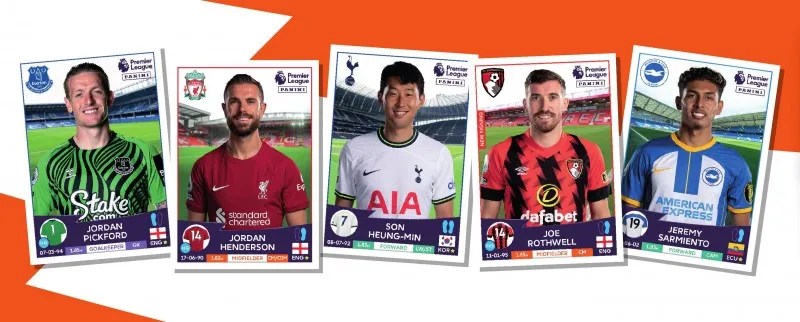 LA CHECK-LIST 1. Premier League Trophy 2. Premier League Ball HOME & AWAY KIT 3. AFC Bournemouth 4. Arsenal 5. Aston Villa 6. Brentford 7. Brighton & Hove Albion 8. Chelsea 9. Crystal Palace 10. Everton 11. Fulham 12. Leeds United 13. Leicester City 14. Liverpool 15. Manchester City 16. Manchester United 17. Newcastle United 18. Nottingham Forest 19. Southampton 20. Tottenham Hotspur 21. West Ham United 22. Wolverhampton Wanderers 23. Club Badge (AFC Bournemouth) 24. Mark Travers (AFC Bournemouth) 25. Neto (AFC Bournemouth) 26. Ryan Fredericks (AFC Bournemouth) 27. Lloyd Kelly (AFC Bournemouth) 28. Chris Mepham (AFC Bournemouth) 29. Adam Smith (AFC Bournemouth) 30. Team Photo (AFC Bournemouth) 31. Marcos Senesi (AFC Bournemouth) 32. Jordan Zemura (AFC Bournemouth) 33. Lewis Cook (AFC Bournemouth) 34. David Brooks (AFC Bournemouth) 35. Jefferson Lerma (AFC Bournemouth) 36. Ryan Christie (AFC Bournemouth) 37. Joe Rothwell (AFC Bournemouth) 38. Marcus Tavernier (AFC Bournemouth) 39. Junior Stanislas (AFC Bournemouth) 40. Ben Pearson (AFC Bournemouth) 41. Philip Billing (AFC Bournemouth) 42. Dominic Solanke (AFC Bournemouth) 43. Keiffer Moore (AFC Bournemouth) 44. Jaidon Anthony (AFC Bournemouth) 45. Jaidon Anthony (AFC Bournemouth) One to Watch 46. Marcus Tavernier (AFC Bournemouth) Star Signing 47. Keiffer Moore (AFC Bournemouth) Celebration 48. Ryan Christie (AFC Bournemouth) Key Player 49. Neto (AFC Bournemouth) Key Player 50. Dominic Solanke (AFC Bournemouth) Key Player 51. Lloyd Kelly (AFC Bournemouth) Key Player52. Club Badge (Arsenal) 53. Aaron Ramsdale (Arsenal) 54. Matt Turner (Arsenal) 55. Kieran Tierney (Arsenal) 56. Ben White (Arsenal) 57. Gabriel Magalhães (Arsenal) 58. William Saliba (Arsenal) 59. Team Photo (Arsenal) 60. Rob Holding (Arsenal) 61. Takehiro Tomiyasu (Arsenal) 62. Oleksandr Zinchenko (Arsenal) 63. Thomas Partey (Arsenal) 64. Bukayo Saka (Arsenal) 65. Emile Smith Rowe (Arsenal) 66. Martin Ødegaard (Arsenal) 67. Fábio Vieira (Arsenal) 68. Albert Sambi Lokonga (Arsenal) 69. Mohamed Elneny (Arsenal) 70. Granit Xhaka (Arsenal) 71. Gabriel Jesus (Arsenal) 72. Gabriel Martinelli (Arsenal) 73. Eddie Nketiah (Arsenal) 74. Gabriel Martinelli (Arsenal) One to Watch 75. Gabriel Jesus (Arsenal) Star Signing 76. William Saliba (Arsenal) Celebration 77. Oleksandr Zinchenko (Arsenal) Key Player 78. Aaron Ramsdale (Arsenal) Key Player 79. Granit Xhaka (Arsenal) Key Player 80. Bukayo Saka (Arsenal) Key Player 81. Club Badge (Aston Villa) 82. Emiliano Martínez (Aston Villa) 83. Robin Olsen (Aston Villa) 84. Matty Cash (Aston Villa) 85. Diego Carlos (Aston Villa) 86. Ezri Konsa (Aston Villa) 87. Tyrone Mings (Aston Villa) 88. Team Photo (Aston Villa) 89. Ashley Young (Aston Villa) 90. Jan Bednarek (Aston Villa) 91. Lucas Digne (Aston Villa) 92. Douglas Luiz (Aston Villa) 93. John McGinn (Aston Villa) 94. Morgan Sanson (Aston Villa) 95. Emiliano Buendía (Aston Villa) 96. Philippe Coutinho (Aston Villa) 97. Leon Bailey (Aston Villa) 98. Leander Dendoncker (Aston Villa) 99. Jacob Ramsey (Aston Villa) 100. Boubacar Kamara (Aston Villa) 101. Danny Ings (Aston Villa) 102. Ollie Watkins (Aston Villa) 103. Jacob Ramsey (Aston Villa) One to Watch 104. Diego Carlos (Aston Villa) Star Signing 105. Leon Bailey (Aston Villa) Celebration 106. Lucas Digne (Aston Villa) Key Player 107. Emiliano Martínez (Aston Villa) Key Player 108. Danny Ings (Aston Villa) Key Player 109. Philippe Coutinho (Aston Villa) Key Player 110. Club Badge (Brentford) 111. David Raya (Brentford) 112. Thomas Strakosha (Brentford) 113. Aaron Hickey (Brentford) 114. Rico Henry (Brentford) 115. Ethan Pinnock (Brentford) 116. Zanka (Brentford) 117. Team Photo (Brentford) 118. Ben Mee (Brentford) 119. Pontus Jansson (Brentford) 120. Kristoffer Ajer (Brentford) 121. Christian Nørgaard (Brentford) 122. Mathias Jensen (Brentford) 123. Josh Dasilva (Brentford) 124. Yoane Wissa (Brentford) 125. Mikkel Damsgaard (Brentford) 126. Shandon Baptiste (Brentford) 127. Vitaly Janelt (Brentford) 128. Sergi Canós (Brentford) 129. Ivan Toney (Brentford) 130. Bryan Mbeumo (Brentford) 131. Keane Lewis-Potter (Brentford) 132. Yoane Wissa (Brentford) One to Watch 133. Ben Mee (Brentford) Star Signing 134. Ivan Toney (Brentford) Celebration 135. Christian Nørgaard (Brentford) Key Player 136. David Raya (Brentford) Key Player 137. Bryan Mbeumo (Brentford) Key Player 138. Pontus Jansson (Brentford) Key Player 139. Club Badge (Brighton & Hove Albion) 140. Robert Sánchez (Brighton & Hove Albion) 141. Jason Steele (Brighton & Hove Albion) 142. Tariq Lamptey (Brighton & Hove Albion) 143. Adam Webster (Brighton & Hove Albion) 144. Lewis Dunk (Brighton & Hove Albion) 145. Levi Colwill (Brighton & Hove Albion) 146. Team Photo (Brighton & Hove Albion) 147. Pervis Estupiñán (Brighton & Hove Albion) 148. Joël Veltman (Brighton & Hove Albion) 149. Solly March (Brighton & Hove Albion) 150. Alexis Mac Allister (Brighton & Hove Albion) 151. Pascal Groß (Brighton & Hove Albion) 152. Adam Lallana (Brighton & Hove Albion) 153. Jakub Moder (Brighton & Hove Albion) 154. Kaoru Mitoma (Brighton & Hove Albion) 155. Moisés Caicedo (Brighton & Hove Albion) 156. Billy Gilmour (Brighton & Hove Albion) 157. Leandro Toussard (Brighton & Hove Albion) 158. Danny Welback (Brighton & Hove Albion) 159. Jeremy Sarmiento (Brighton & Hove Albion) 160. Deniz Undav (Brighton & Hove Albion) 161. Moisés Caicedo (Brighton & Hove Albion) One to Watch 162. Pervis Estupiñán (Brighton & Hove Albion) Star Signing 163. Alexis Mac Allister (Brighton & Hove Albion) Celebration 164. Pascal Groß (Brighton & Hove Albion) Key Player 165. Robert Sánchez (Brighton & Hove Albion) Key Player 166. Leandro Toussard (Brighton & Hove Albion) Key Player 167. Lewis Dunk (Brighton & Hove Albion) Key Player