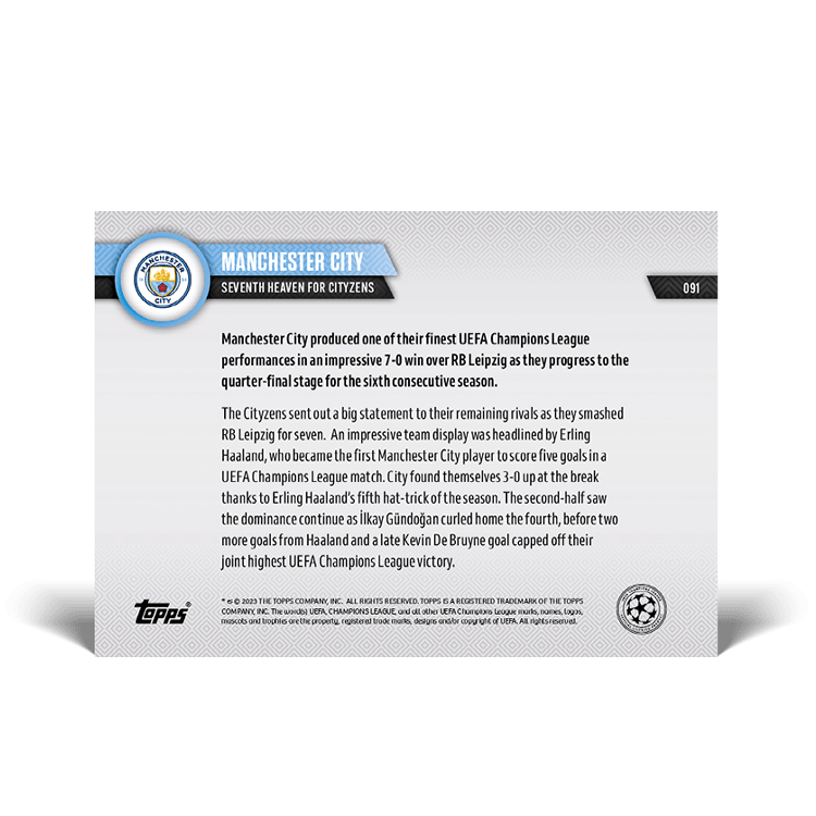 TOPPS NOW « UEFA CHAMPIONS LEAGUE 2022/23 » : visuel des cartes 090 à 091 (huitièmes de finale retour du 14/03) Thierry K.16/03/202316/03/2023ACTUALITÉS, DÉCOUVERTE, EDITION LIMITÉE Navigation des articles PrécédentSuivant Manchester City 7 – 0 RB Leipzig Partager : Cliquer pour imprimer(ouvre dans une nouvelle fenêtre) Imprimer Cliquer pour envoyer un lien par e-mail à un ami(ouvre dans une nouvelle fenêtre) E-mail Cliquez pour partager sur Facebook(ouvre dans une nouvelle fenêtre) Facebook Cliquer pour partager sur X(ouvre dans une nouvelle fenêtre) X J’aime chargement… Articles similaires