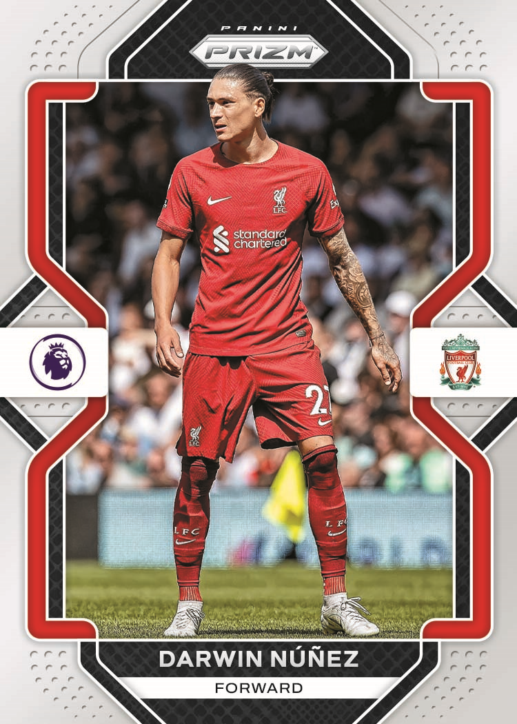 INSERT / SCORERS CLUB 1. Erling Haaland - Manchester City 2. Wilfried Zaha - Crystal Palace 3. Bryan Mbeumo - Brentford 4. Gianluca Scamacca - West Ham United 5. Aleksandar Mitrovic - Fulham 6. Marcus Rashford - Manchester United 7. Jamie Vardy - Leicester City 8. Raheem Sterling - Chelsea FC 9. Danny Welbeck - Brighton & Hove Albion 10. Taiwo Awoniyi - Nottingham Forest FC 11. Bukayo Saka - Arsenal 12. Callum Wilson - Newcastle United 13. Mohamed Salah - Liverpool FC 14. Che Adams - Southampton 15. Dominic Solanke - AFC Bournemouth 16. Neal Maupay - Everton 17. Raul Jimenez - Wolverhampton Wanderers 18. Patrick Bamford - Leeds United 19. Danny Ings - Aston Villa 20. Harry Kane - Tottenham Hotspur 21. Riyad Mahrez - Manchester City 22. Gabriel Jesus - Arsenal 23. Jarrod Bowen - West Ham United 24. Heung-Min Son - Tottenham Hotspur 25. Kevin De Bruyne - Manchester City 26. Ollie Watkins - Aston Villa 27. Roberto Firmino - Liverpool FC 28. James Maddison - Leicester City 29. Diogo Jota - Liverpool FC 30. Michail Antonio - West Ham United INSERT / SUBLIME 1. Kai Havertz - Chelsea FC 2. Brenden Aaronson - Leeds United 3. Allan Saint-Maximin - Newcastle United 4. Gabriel Martinelli - Arsenal 5. Luis Diaz - Liverpool FC 6. Phil Foden - Manchester City 7. Conor Gallagher - Chelsea FC 8. James Ward-Prowse - Southampton 9. Gabriel Jesus - Arsenal 10. Jack Grealish - Manchester City 11. James Maddison - Leicester City 12. Andy Robertson - Liverpool FC 13. Bruno Fernandes - Manchester United 14. Declan Rice - West Ham United 15. Aaron Ramsdale - Arsenal 16. Christian Eriksen - Manchester United 17. Christian Pulisic - Chelsea FC 18. Bernardo Silva - Manchester City 19. Bryan Mbeumo - Brentford 20. Marc Guehi - Crystal Palace 21. Emile Smith Rowe - Arsenal 22. Harry Kane - Tottenham Hotspur 23. Fabio Carvalho - Liverpool FC 24. Dennis Bergkamp - Arsenal 25. David Beckham - Manchester United source cardboardconnection.com