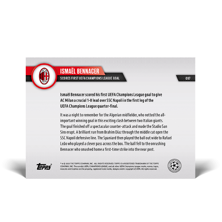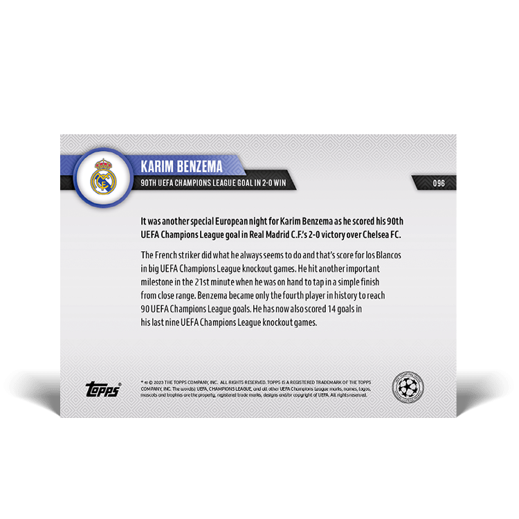 TOPPS NOW « UEFA CHAMPIONS LEAGUE 2022/23 » : visuel des cartes 096 à 097 (quarts de finale aller du 12/04) Thierry K.17/04/202317/04/2023ACTUALITÉS, DÉCOUVERTE, EDITION LIMITÉE Navigation des articles PrécédentSuivant Real Madrid 2 – 0 Chelsea AC Milan 1 – 0 Naples Partager : Cliquer pour imprimer(ouvre dans une nouvelle fenêtre) Imprimer Cliquer pour envoyer un lien par e-mail à un ami(ouvre dans une nouvelle fenêtre) E-mail Cliquez pour partager sur Facebook(ouvre dans une nouvelle fenêtre) Facebook Cliquer pour partager sur X(ouvre dans une nouvelle fenêtre) X J’aime chargement… Articles similaires