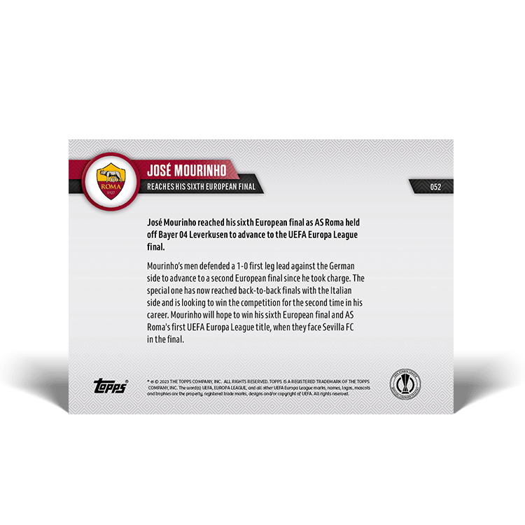 TOPPS NOW « UEFA EUROPA LEAGUES 2022/23 » : visuel des cartes 048 à 052 (demi-finales retour du 18/05) Thierry K.22/05/202322/05/2023ACTUALITÉS, DÉCOUVERTE, EDITION LIMITÉE Navigation des articles PrécédentSuivant Partager : Cliquer pour imprimer(ouvre dans une nouvelle fenêtre) Imprimer Cliquer pour envoyer un lien par e-mail à un ami(ouvre dans une nouvelle fenêtre) E-mail Cliquez pour partager sur Facebook(ouvre dans une nouvelle fenêtre) Facebook Cliquer pour partager sur X(ouvre dans une nouvelle fenêtre) X J’aime chargement… Articles similaires