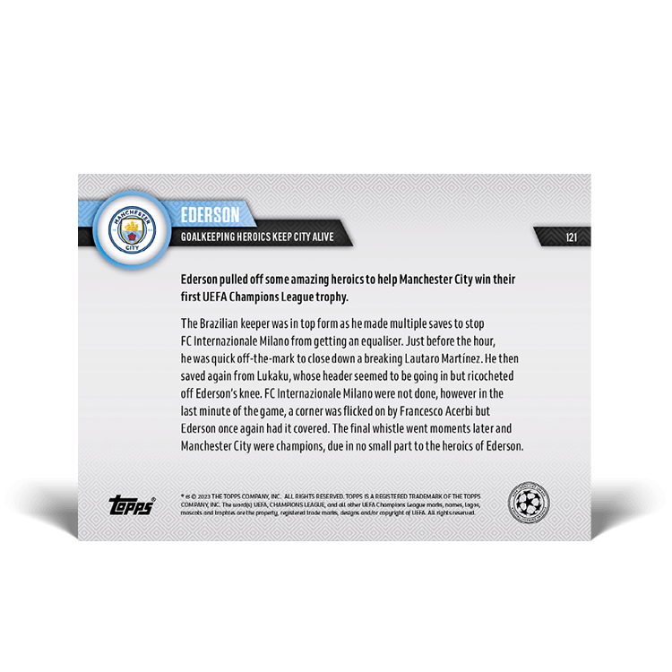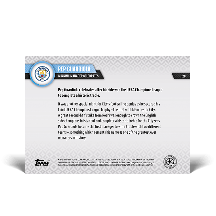 TOPPS NOW « UEFA CHAMPIONS LEAGUE 2022/23 » : visuel des cartes 117 à 124 (finale du 10/06) Thierry K.13/06/202313/06/2023ACTUALITÉS, DÉCOUVERTE, EDITION LIMITÉE Navigation des articles PrécédentSuivant Manchester City 1 – 0 Inter Milan Partager : Cliquer pour imprimer(ouvre dans une nouvelle fenêtre) Imprimer Cliquer pour envoyer un lien par e-mail à un ami(ouvre dans une nouvelle fenêtre) E-mail Cliquez pour partager sur Facebook(ouvre dans une nouvelle fenêtre) Facebook Cliquer pour partager sur X(ouvre dans une nouvelle fenêtre) X J’aime chargement… Articles similaires