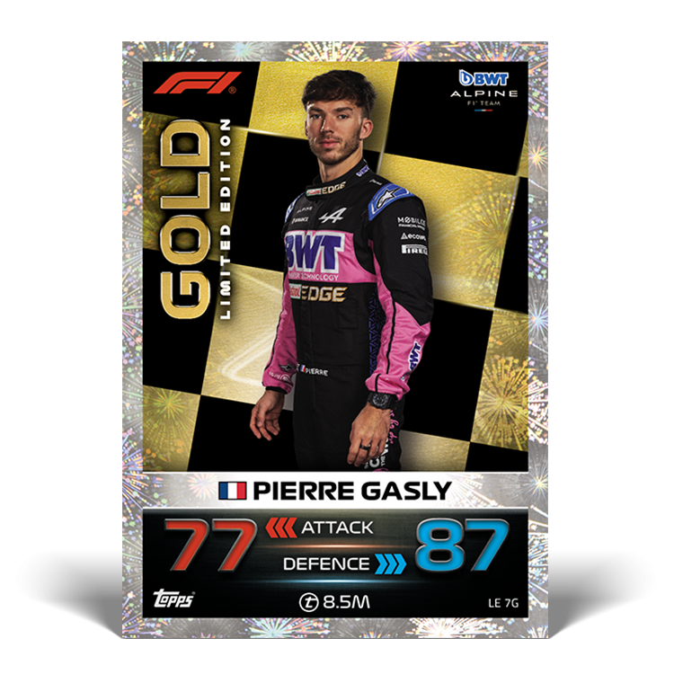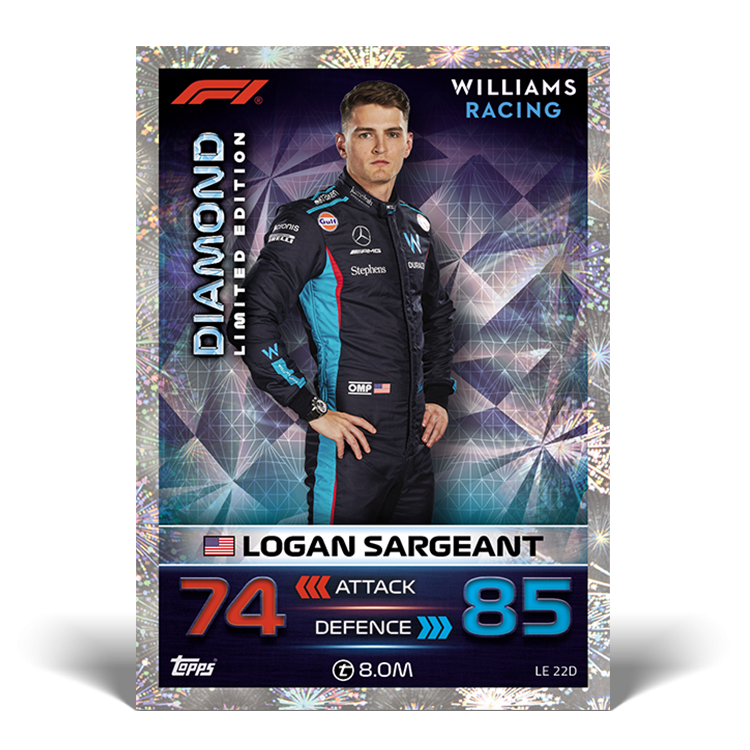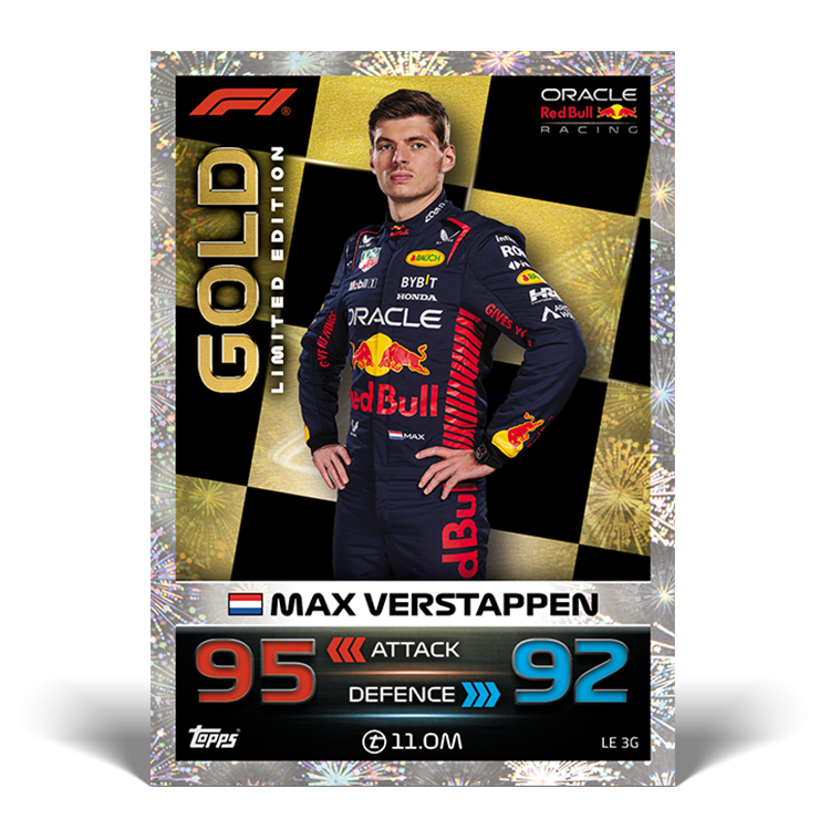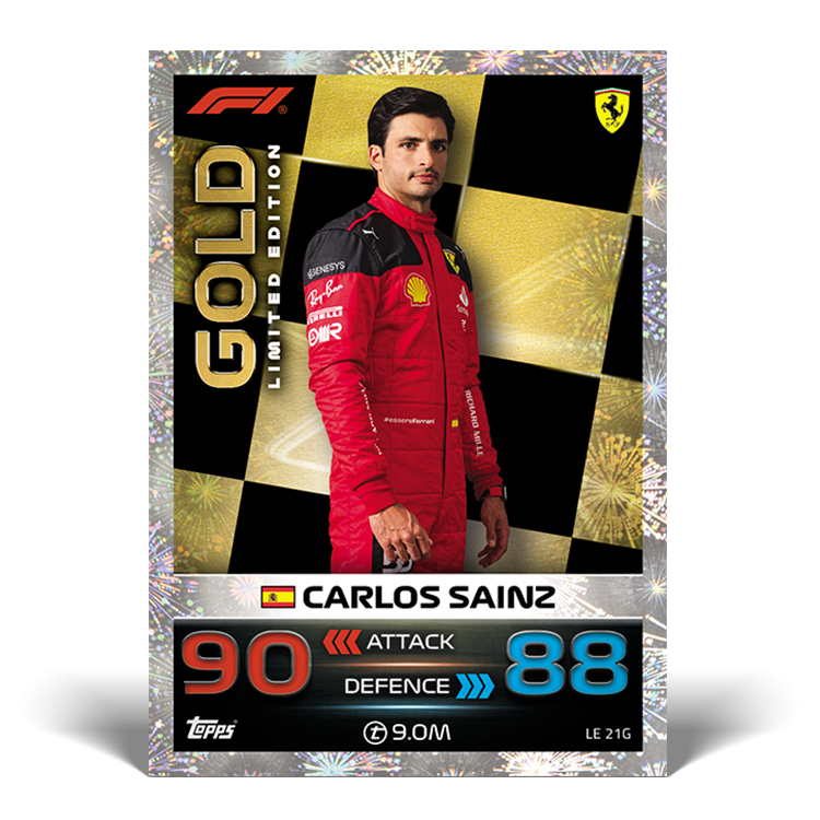 LES CARTES "LIMITED EDITION" LIMITED EDITION / DIAMOND LE 1D. Charles Leclerc (Ferrari) LE 5D. Fernando Alonso (Aston Martin) LE 9D. Kevin Magnussen (Haas) LE 13D. Alex Albon (Williams) LE 14D. Oscar Piastri (McLaren) LE 20D. Yuki Tsunoda( Scuderia AlphaTauri) LE 22D. Logan Sargeant (Williams) LE 27D. Max Verstappen (Red Bull Racing) LE 30D. Nyck de Vries (Scuderia AlphaTauri) LE 31D. Lewis Hamilton (Mercedes-AMG) LE 33D. Sergio Perez (Red Bull Racing) LE 37D. Zhou Guanyu (Alfa Romeo) LE 40D. Nico Hülkenberg (Haas)LIMITED EDITION / GOLD LE-2G. George Russell (Mercedes-AMG) LE-3G. Max Verstappen (Red Bull Racing) LE-4G. Lewis Hamilton (Mercedes-AMG) LE-6G. Valtteri Bottas (Alfa Romeo) LE-7G. Pierre Gasly (Alpine) LE-10G. Nyck de Vries (Scuderia AlphaTauri) LE-11G. Sergio Perez (Red Bull Racing) LE-12G. Zhou Guanyu (Alfa Romeo) LE-15G. Esteban Ocon (Alpine) LE-16G. Nico Hülkenberg (Haas) LE-19G. Ayrton Senna LE-21G. Carlos Sainz (Ferrari) LE-23G. Lance Stroll (Aston Martin) LE-26G. Alex Albon (Williams) LE-36G. Fernando Alonso (Aston Martin)