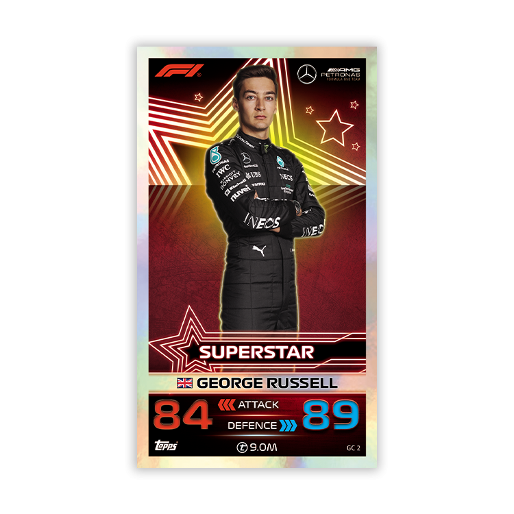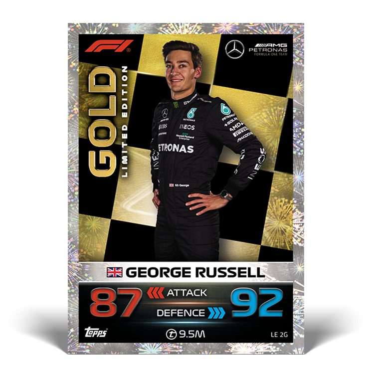 Le pack de démarrage contient 1 carte en édition limitée GOLD LE 2G. George Russell (Mercedes-AMG)