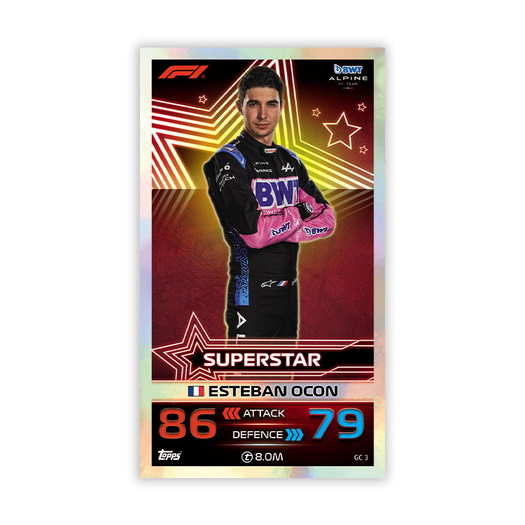 F1 2022 RACE WINNERS 267. Charles Leclerc (Ferrari) 268. Max Verstappen (Red Bull Racing) 269. Sergio Perez (Red Bull Racing) 270. Carlos Sainz (Ferrari) 271. George Russell (Mercedes-AMG) F1 SUPERSTARS 272. Max Verstappen (Red Bull Racing) 273. Sergio Perez (Red Bull Racing) 274. Charles Leclerc (Ferrari) 275. Carlos Sainz (Ferrari) 276. George Russell (Mercedes-AMG) 277. Lewis Hamilton (Mercedes-AMG) 278. Esteban Ocon (Alpine) 279. Pierre Gasly (Alpine) 280. Lando Norris (McLaren) 281. Oscar Piastri (McLaren) 282. Valtteri Bottas (Alfa Romeo) 283. Zhou Guanyu (Alfa Romeo) 284. Fernando Alonso (Aston Martin) 285. Lance Stroll (Aston Martin) 286. Kevin Magnussen (Haas) 287. Nico Hülkenberg (Haas) 288. Yuki Tsunoda (Scuderia AlphaTauri) 289. Nyck de Vries (Scuderia AlphaTauri) 290. Alex Albon (Williams) 291. Logan Sargeant (Williams)