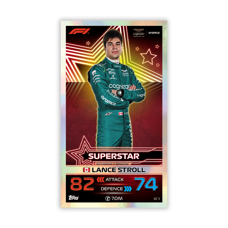 LES CARTES "GIANT" GC1. Sergio Perez (Red Bull Racing) GC2. George Russell (Mercedes-AMG) GC3. Esteban Ocon (Alpine) GC4. Zhou Guanyu (Alfa Romeo) GC5. Lance Stroll (Aston Martin) GC6. Kevin Magnussen (Haas) GC7. Yuki Tsunoda (Scuderia AlphaTauri) GC8. Logan Sargeant (Williams) GC9. Felipe Drugovich (MP Motorsport) GC10. Victor Martins (ART Grand Prix) GC11. Valtteri Bottas (Alfa Romeo) GC12. Lando Norris (McLaren) GC13. Charles Leclerc (Ferrari) GC14. Nyck de Vries (Scuderia AlphaTauri) GC15. Carlos Sainz (Ferrari) GC16. Oscar Piastri McLaren)