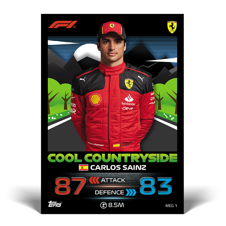 La grande boîte en métal "ORANGE" contient 4 cartes COOL COUNTRYSIDE exclusives MEG 1. Carlos Sainz (Ferrari)MEG 2. Lance Stroll (Aston Martin)