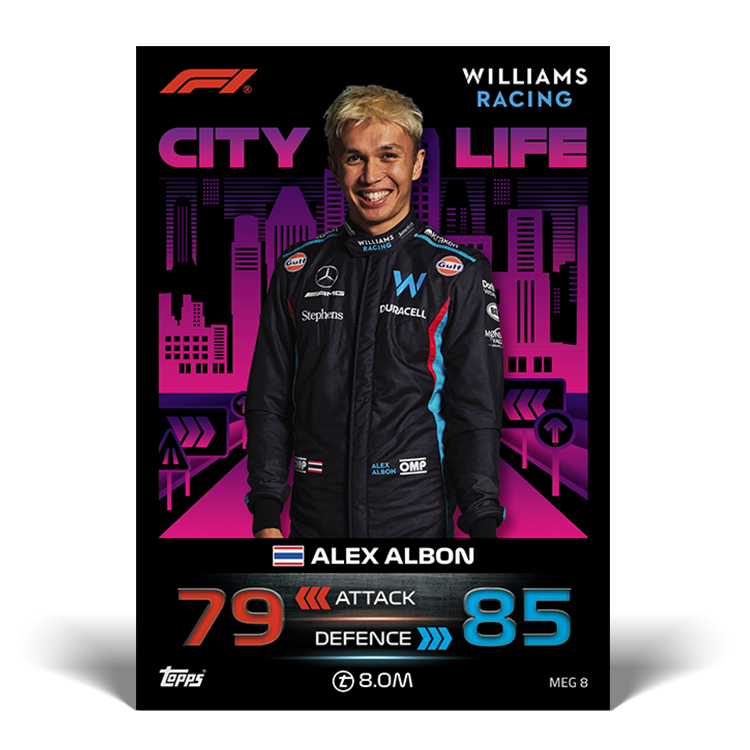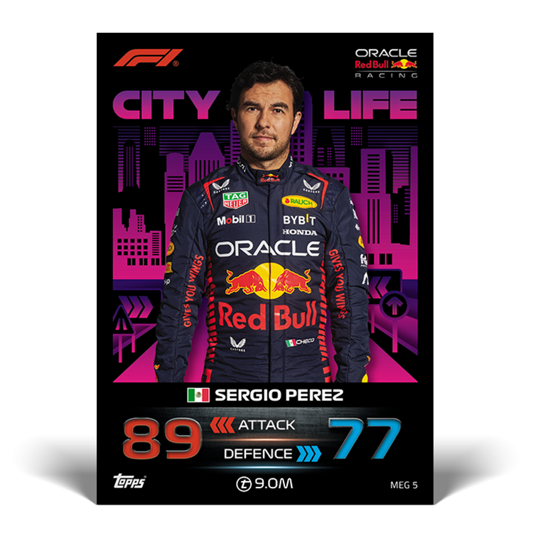 La grande boîte en métal "PURPLE" contient 4 cartes CITY LIFE exclusives MEG 5. Sergio Perez (Red Bull Racing)MEG 6. Oscar Piastri (McLaren)