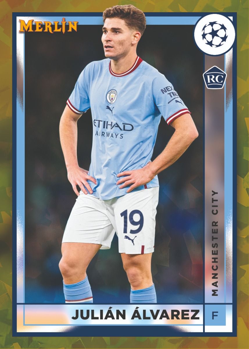 LA CHECK-LIST "RELIC" RELIC / MERLIN'S MATCH BALL MBS-AD. Alphonso Davies - FC Bayern Mϋnchen MBS-AN. Antony - Manchester United MBS-EH. Erling Haaland - Manchester City MBS-GJ. Gabriel Jesus - Arsenal FC MBS-HS. Heung-min Son - Tottenham Hotspur MBS-JB. Jude Bellingham - Borussia Dortmund MBS-JO. Jorginho - Arsenal FC MBS-KB. Karim Benzema - Real Madrid C.F. MBS-KF. Kyogo Furuhashi - Celtic FC MBS-LM. Lionel Messi - Paris Saint-Germain MBS-MM. Mykhailo Mudryk - Chelsea FC MBS-OD. Ousmane Dembélé - FC Barcelona MBS-PED. Pedri - FC Barcelona MBS-RL. Robert Lewandowski - FC Barcelona MBS-TW. Timo Werner - RB Leipzigsource cardboardconnection.com
