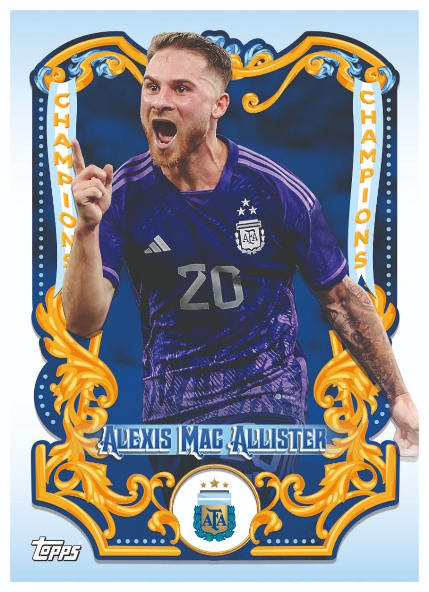 INSERT / AFA DISCS Alexis Mac Allister Osvaldo Ardiles Julián Álvarez Lionel Messi Lautaro Martínez Paulo Dybala Ángel Di MarÍa Carlos Tevez Diego Maradona Hernan Crespo Gabriel Batistuta Pablo Aimar Juan Román Riquelme Mario Kempes Javier Zanetti Sergio Agüero Juan Sebastían Veron Roberto Ayala Walter Samuel Ariel Ortega Diego Simeone Enzo Fernández Fernando Redondo Daniel Passarella Claudio Caniggia AUTOGRAPH / FIRST TEAM Nicolas Tagliafico Emiliano Martínez Cristian Romero Juan Foyth Ángel Correa Enzo Fernández National Debut Lionel Messi Lautaro Martinez Paulo Dybala Lionel Scaloni