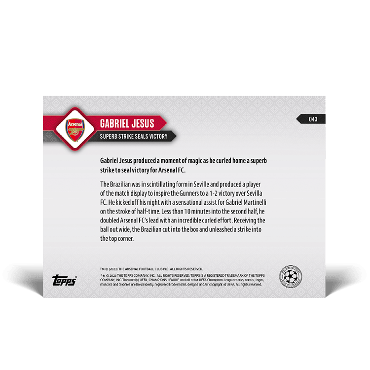 TOPPS NOW « UEFA CHAMPIONS LEAGUE 2023/24 » : visuel des cartes 042 à 046 (matchs de groupe du 24/10) Thierry K.31/10/202331/10/2023ACTUALITÉS, DÉCOUVERTE, EDITION LIMITÉE Navigation des articles PrécédentSuivant Partager : Cliquer pour imprimer(ouvre dans une nouvelle fenêtre) Imprimer Cliquer pour envoyer un lien par e-mail à un ami(ouvre dans une nouvelle fenêtre) E-mail Cliquez pour partager sur Facebook(ouvre dans une nouvelle fenêtre) Facebook Cliquer pour partager sur X(ouvre dans une nouvelle fenêtre) X J’aime chargement… Articles similaires