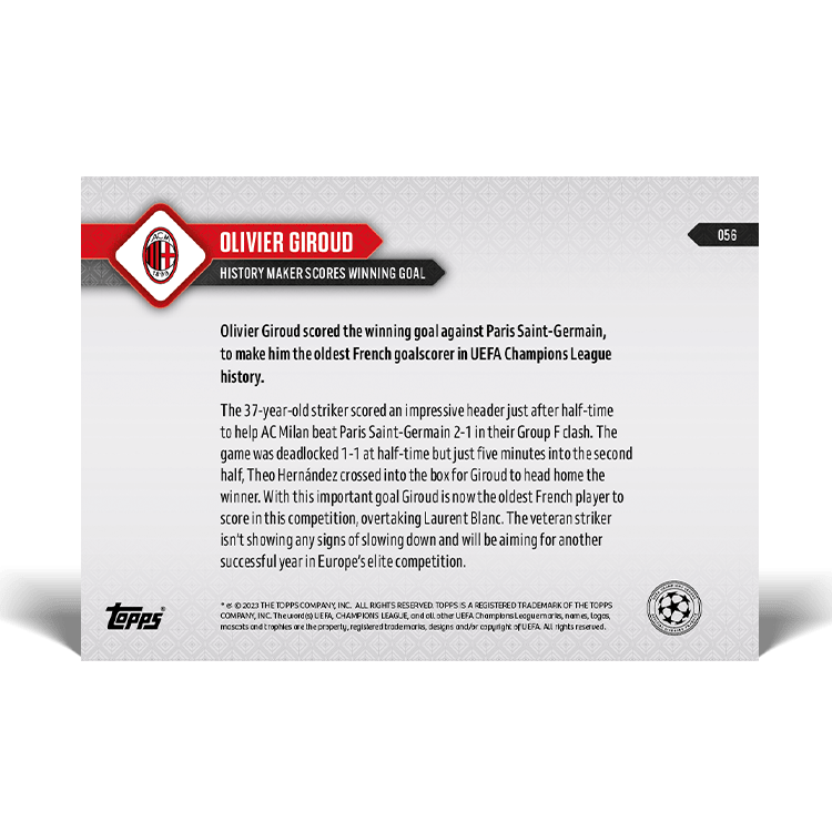 TOPPS NOW « UEFA CHAMPIONS LEAGUE 2023/24 » : visuel des cartes 054 à 061 (matchs de groupe du 07/11) Thierry K.18/11/202318/11/2023ACTUALITÉS, DÉCOUVERTE, EDITION LIMITÉE Navigation des articles PrécédentSuivant Partager : Imprimer(ouvre dans une nouvelle fenêtre) Imprimer Envoyer un lien par e-mail à un ami(ouvre dans une nouvelle fenêtre) E-mail Partager sur Facebook(ouvre dans une nouvelle fenêtre) Facebook Partager sur X(ouvre dans une nouvelle fenêtre) X J’aime chargement… Articles similaires