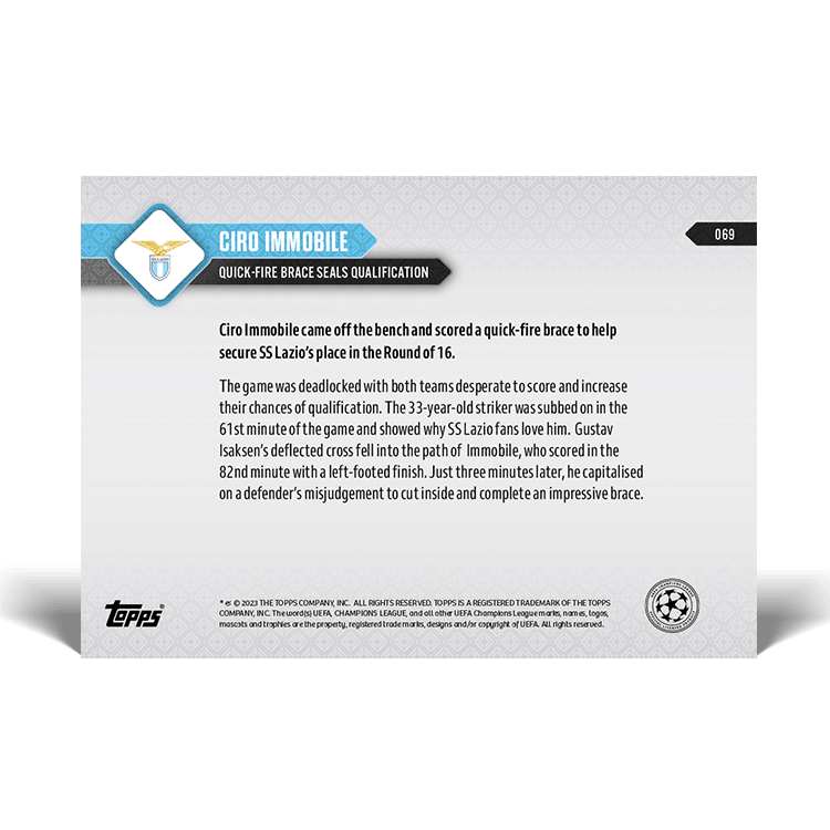 TOPPS NOW « UEFA CHAMPIONS LEAGUE 2023/24 » : visuel des cartes 065 à 069 (matchs de groupe du 28/11) Thierry K.09/12/202309/12/2023ACTUALITÉS, DÉCOUVERTE, EDITION LIMITÉE Navigation des articles PrécédentSuivant Partager : Cliquer pour imprimer(ouvre dans une nouvelle fenêtre) Imprimer Cliquer pour envoyer un lien par e-mail à un ami(ouvre dans une nouvelle fenêtre) E-mail Cliquez pour partager sur Facebook(ouvre dans une nouvelle fenêtre) Facebook Cliquer pour partager sur X(ouvre dans une nouvelle fenêtre) X J’aime chargement… Articles similaires