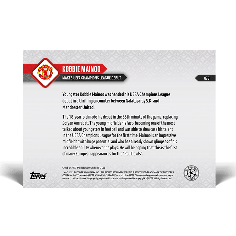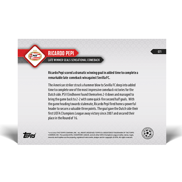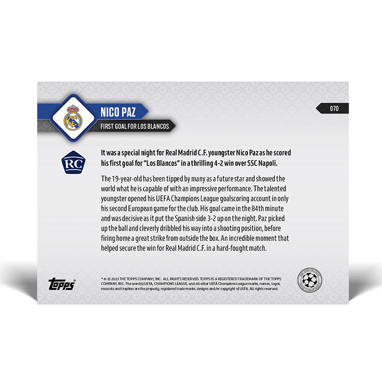 TOPPS NOW « UEFA CHAMPIONS LEAGUE 2023/24 » : visuel des cartes 070 à 076 (matchs de groupe du 29/11) Thierry K.09/12/202309/12/2023ACTUALITÉS, DÉCOUVERTE, EDITION LIMITÉE Navigation des articles PrécédentSuivant Partager : Cliquer pour imprimer(ouvre dans une nouvelle fenêtre) Imprimer Cliquer pour envoyer un lien par e-mail à un ami(ouvre dans une nouvelle fenêtre) E-mail Cliquez pour partager sur Facebook(ouvre dans une nouvelle fenêtre) Facebook Cliquer pour partager sur X(ouvre dans une nouvelle fenêtre) X J’aime chargement… Articles similaires