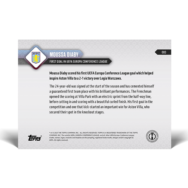 TOPPS NOW « UEFA EUROPA CONFERENCE LEAGUE 2023/24 » : visuel de la carte 003 (match de groupe du 30/11) Thierry K.09/12/202309/12/2023ACTUALITÉS, DÉCOUVERTE, EDITION LIMITÉE Navigation des articles PrécédentSuivant Partager : Cliquer pour imprimer(ouvre dans une nouvelle fenêtre) Imprimer Cliquer pour envoyer un lien par e-mail à un ami(ouvre dans une nouvelle fenêtre) E-mail Cliquez pour partager sur Facebook(ouvre dans une nouvelle fenêtre) Facebook Cliquer pour partager sur X(ouvre dans une nouvelle fenêtre) X J’aime chargement… Articles similaires