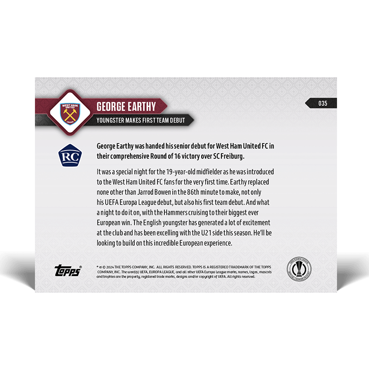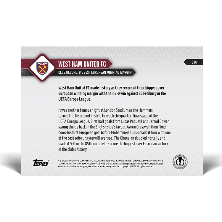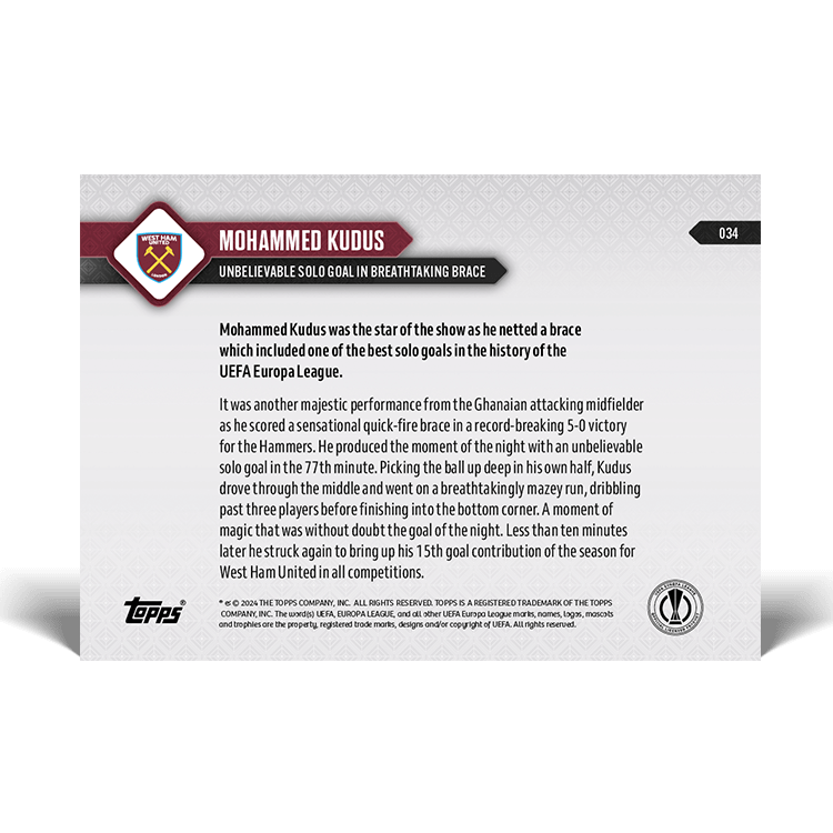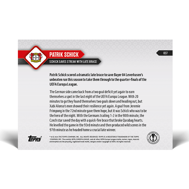 TOPPS NOW « UEFA EUROPA LEAGUE 2023/24 » : visuel des cartes 032 à 037 (huitièmes de finale retour du 14/03) Thierry K.23/03/202423/03/2024ACTUALITÉS, DÉCOUVERTE, EDITION LIMITÉE Navigation des articles PrécédentSuivant Partager : Cliquer pour imprimer(ouvre dans une nouvelle fenêtre) Imprimer Cliquer pour envoyer un lien par e-mail à un ami(ouvre dans une nouvelle fenêtre) E-mail Cliquez pour partager sur Facebook(ouvre dans une nouvelle fenêtre) Facebook Cliquer pour partager sur X(ouvre dans une nouvelle fenêtre) X J’aime chargement… Articles similaires