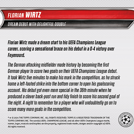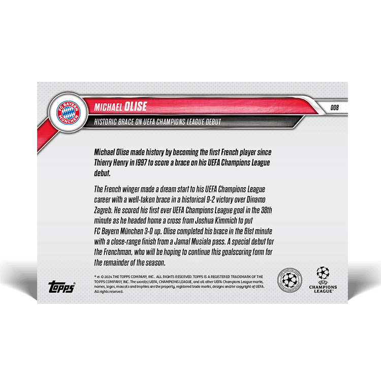 TOPPS NOW « UEFA CHAMPIONS LEAGUE 2024/25 » : visuel des cartes 005 à 017 (première journée du 17 au 19/09) Thierry K.27/09/202410/10/2024ACTUALITÉS, DÉCOUVERTE, EDITION LIMITÉE Navigation des articles PrécédentSuivant Partager : Cliquer pour imprimer(ouvre dans une nouvelle fenêtre) Imprimer Cliquer pour envoyer un lien par e-mail à un ami(ouvre dans une nouvelle fenêtre) E-mail Cliquez pour partager sur Facebook(ouvre dans une nouvelle fenêtre) Facebook Cliquer pour partager sur X(ouvre dans une nouvelle fenêtre) X J’aime chargement… Articles similaires