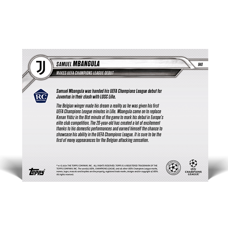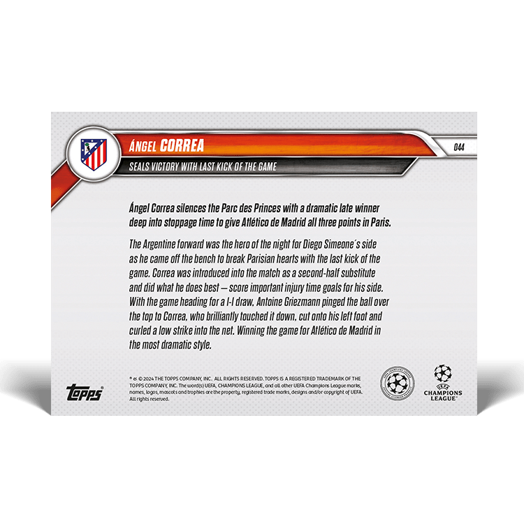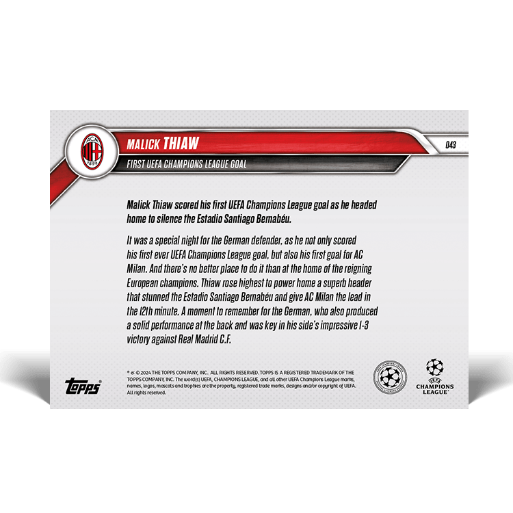 TOPPS NOW « UEFA CHAMPIONS LEAGUE 2024/25 » : visuel des cartes 035 à 046 (quatrième journée des 05 et 06/11) Thierry K.11/11/202411/11/2024ACTUALITÉS, DÉCOUVERTE, EDITION LIMITÉE Navigation des articles PrécédentSuivant Partager : Cliquer pour imprimer(ouvre dans une nouvelle fenêtre) Imprimer Cliquer pour envoyer un lien par e-mail à un ami(ouvre dans une nouvelle fenêtre) E-mail Cliquez pour partager sur Facebook(ouvre dans une nouvelle fenêtre) Facebook Cliquer pour partager sur X(ouvre dans une nouvelle fenêtre) X J’aime chargement… Articles similaires