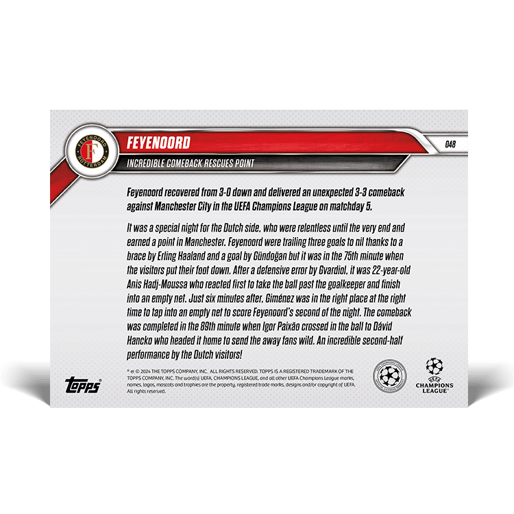 TOPPS NOW « UEFA CHAMPIONS LEAGUE 2024/25 » : visuel des cartes 047 à 062 (cinquième journée des 26 et 27/11) Thierry K.04/12/202404/12/2024ACTUALITÉS, DÉCOUVERTE, EDITION LIMITÉE Navigation des articles PrécédentSuivant Partager : Cliquer pour imprimer(ouvre dans une nouvelle fenêtre) Imprimer Cliquer pour envoyer un lien par e-mail à un ami(ouvre dans une nouvelle fenêtre) E-mail Cliquez pour partager sur Facebook(ouvre dans une nouvelle fenêtre) Facebook Cliquer pour partager sur X(ouvre dans une nouvelle fenêtre) X J’aime chargement… Articles similaires