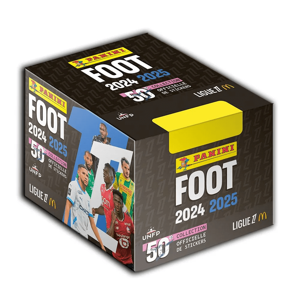 La boîte de 80 pochettes contient un code pour commander 50 stickers manquants à partir du 15/01/2025