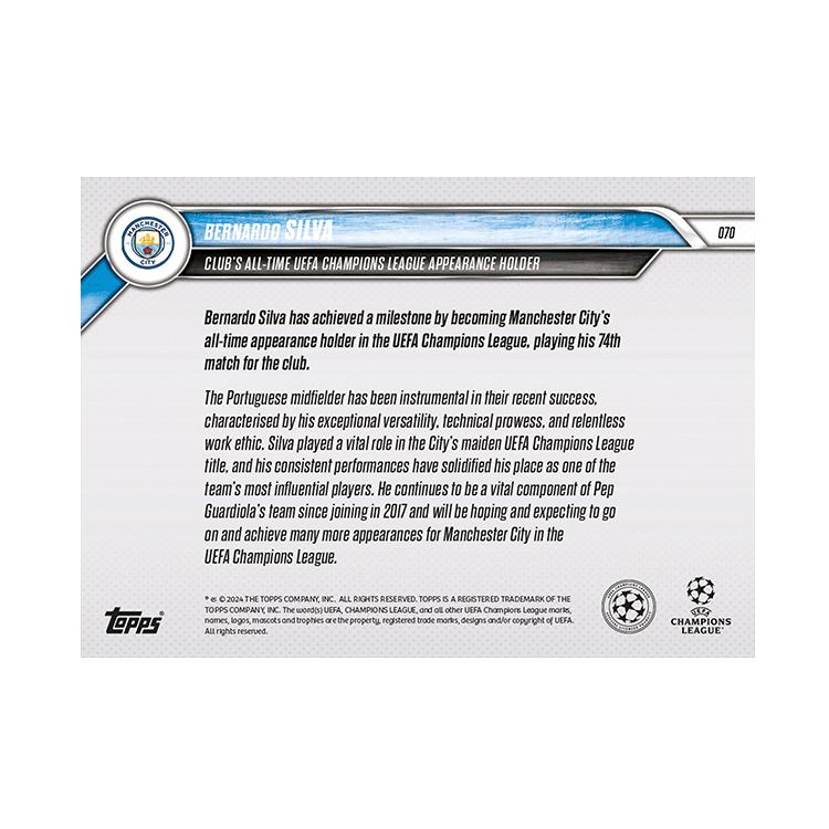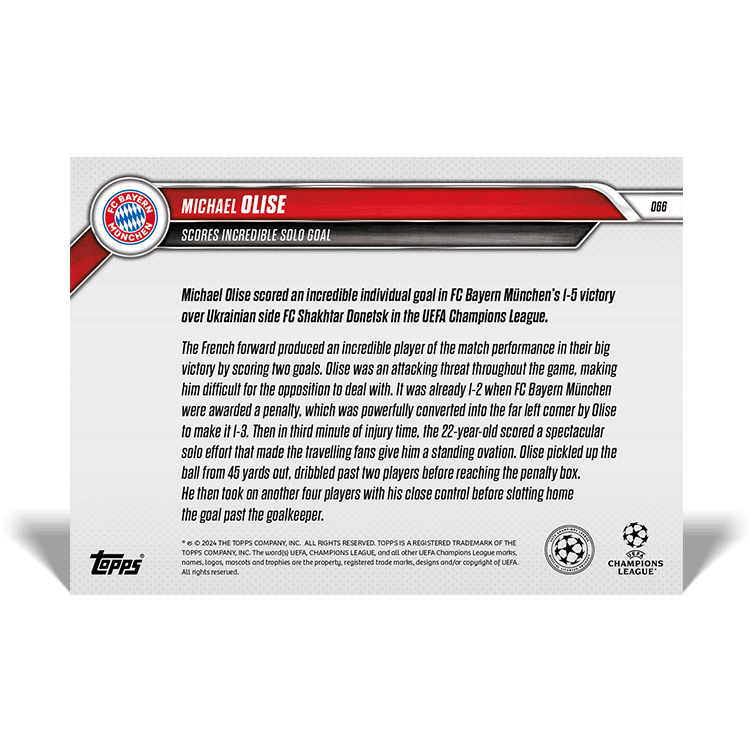 TOPPS NOW « UEFA CHAMPIONS LEAGUE 2024/25 » : visuel des cartes 063 à 071 (sixième journée des 10 et 11/12) Thierry K.21/12/202421/12/2024ACTUALITÉS, DÉCOUVERTE, EDITION LIMITÉE Navigation des articles PrécédentSuivant Partager : Imprimer(ouvre dans une nouvelle fenêtre) Imprimer Envoyer un lien par e-mail à un ami(ouvre dans une nouvelle fenêtre) E-mail Partager sur Facebook(ouvre dans une nouvelle fenêtre) Facebook Partager sur X(ouvre dans une nouvelle fenêtre) X J’aime chargement… Articles similaires