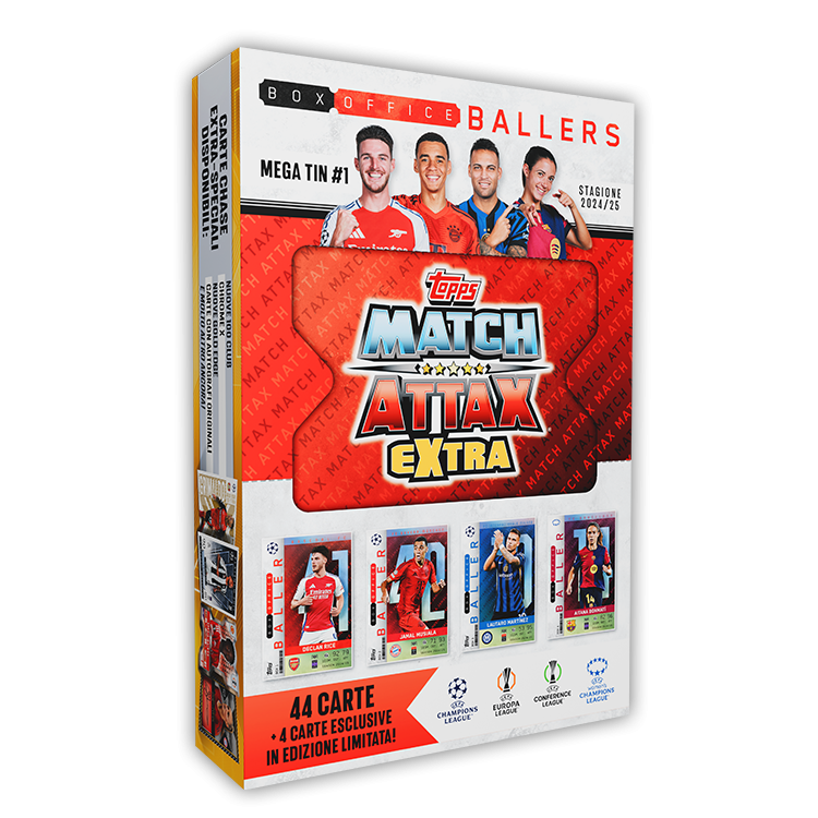 La grande boîte en métal BOX OFFICE BALLERS contient 4 cartes en édition limitée BOX OFFICE BALLER exclusives