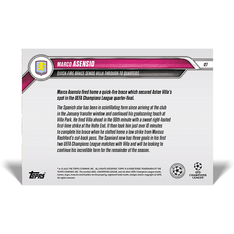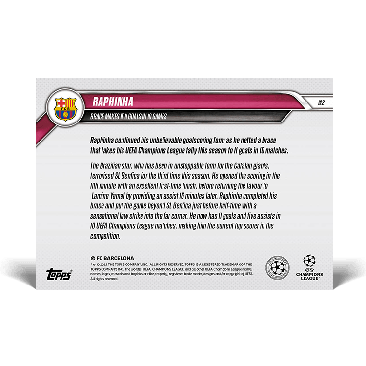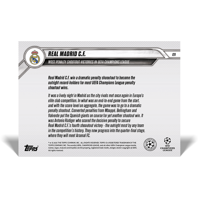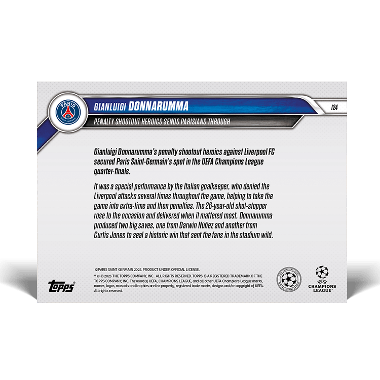 TOPPS NOW « UEFA CHAMPIONS LEAGUE 2024/25 » : visuel des cartes 121 à 129 (huitièmes de finale retour des 11 et 12/03) Thierry K.18/03/202511/04/2025ACTUALITÉS, DÉCOUVERTE, EDITION LIMITÉE Navigation des articles PrécédentSuivant Partager : Cliquer pour imprimer(ouvre dans une nouvelle fenêtre) Imprimer Cliquer pour envoyer un lien par e-mail à un ami(ouvre dans une nouvelle fenêtre) E-mail Cliquez pour partager sur Facebook(ouvre dans une nouvelle fenêtre) Facebook Cliquer pour partager sur X(ouvre dans une nouvelle fenêtre) X J’aime chargement… Articles similaires