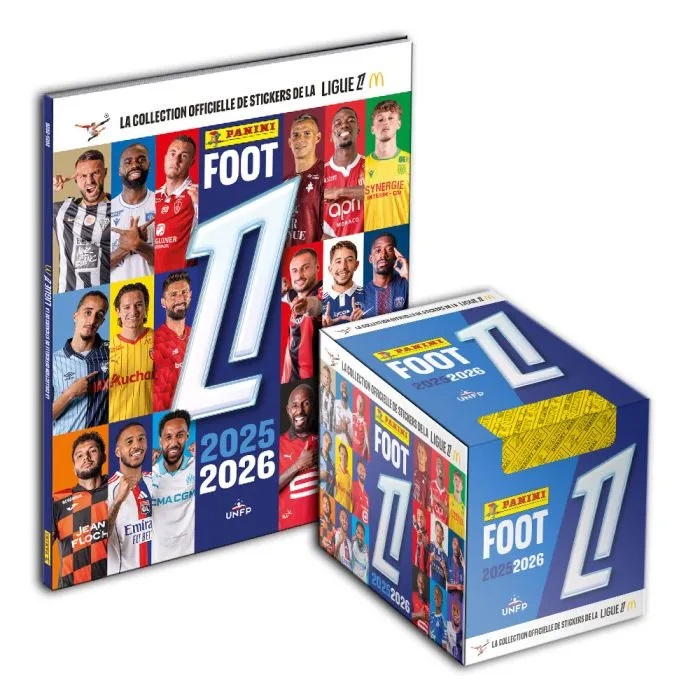 NOUVEAU Pour 39,90 € Panini propose, en exclusivité, la collection complète des 288 stickers 2025 2026 de la LIGUE 2 BKT, avec son album de 42 pages