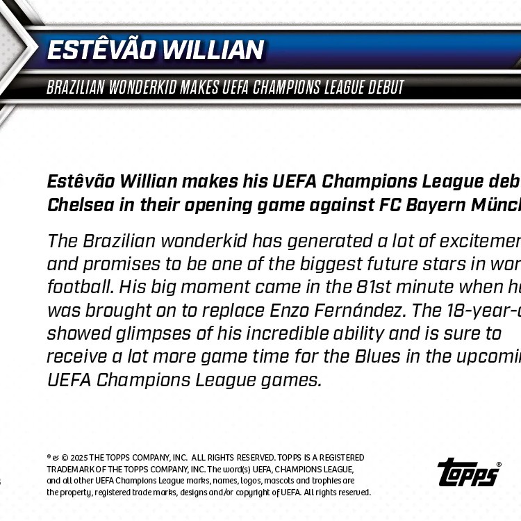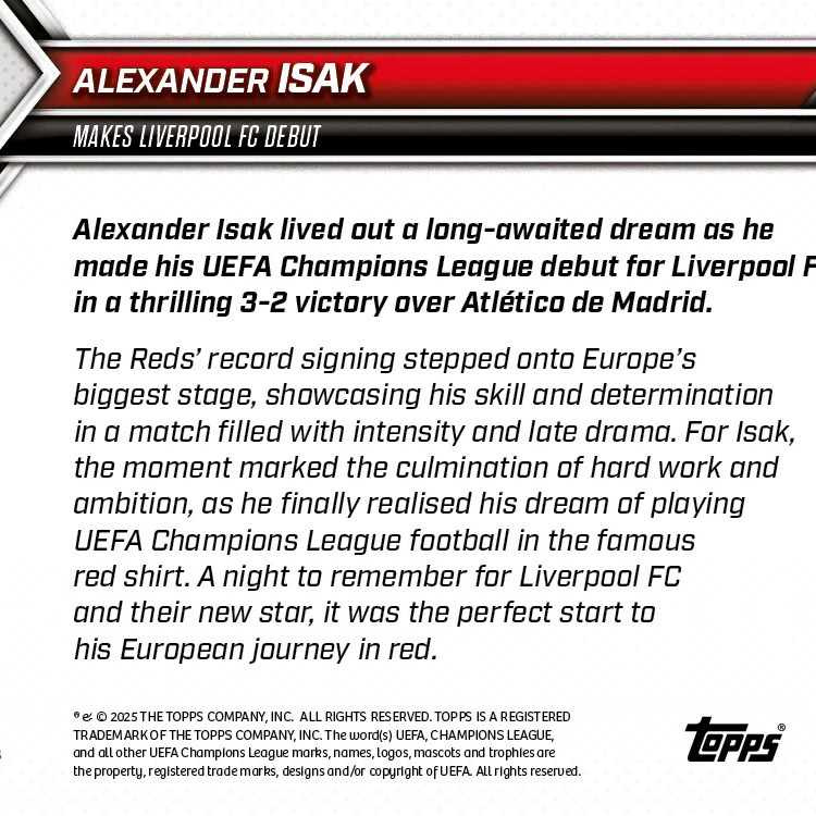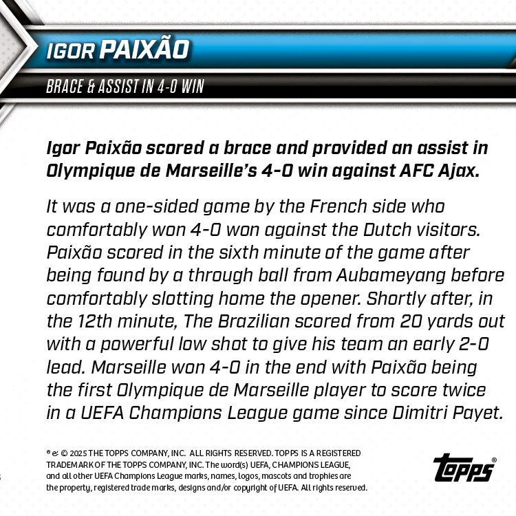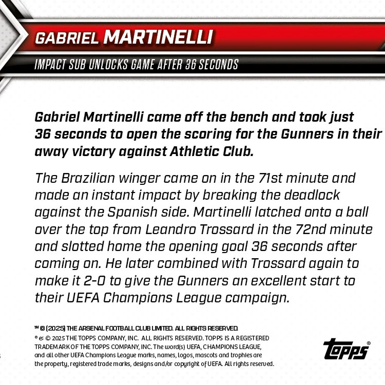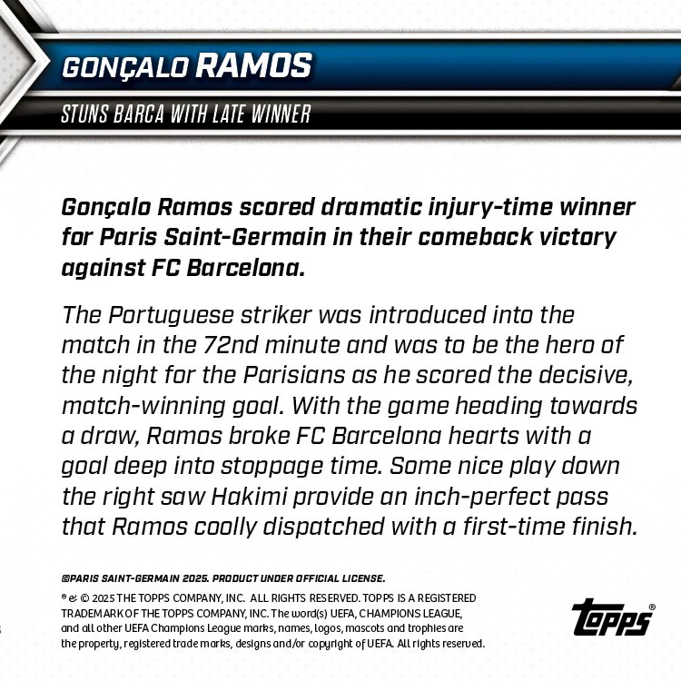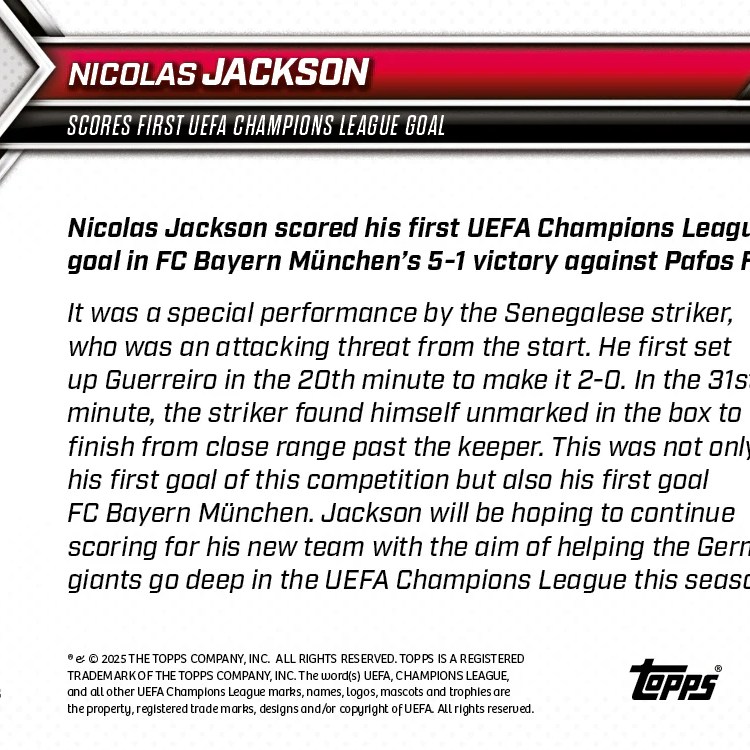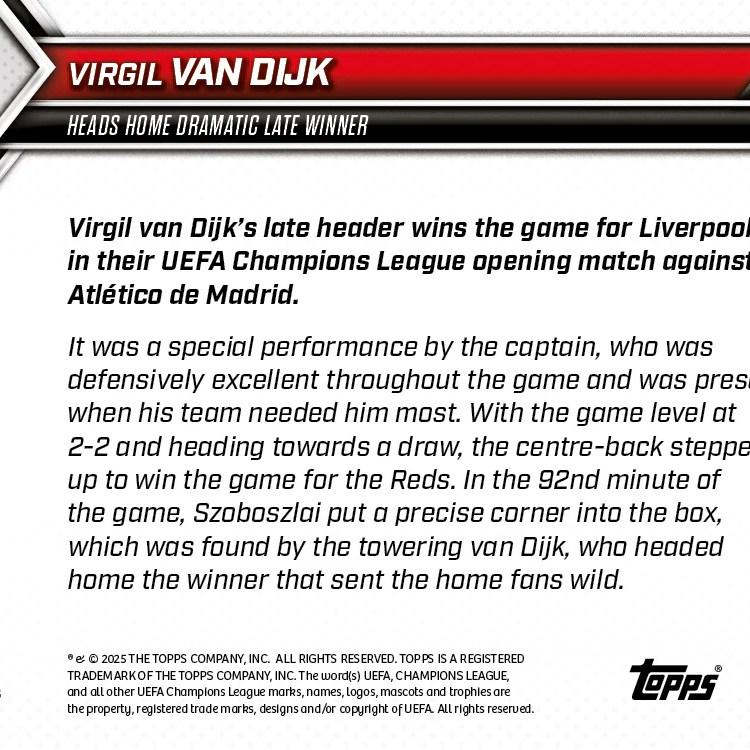 Ces galeries sont actualisées selon les cartes mises en vente sur le site de Topps. Il suffit de cliquer sur une photo pour l’agrandir et accéder au diaporama.