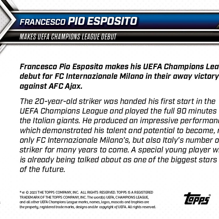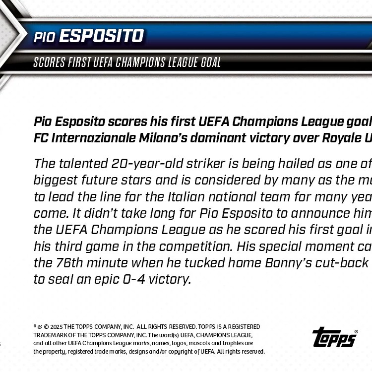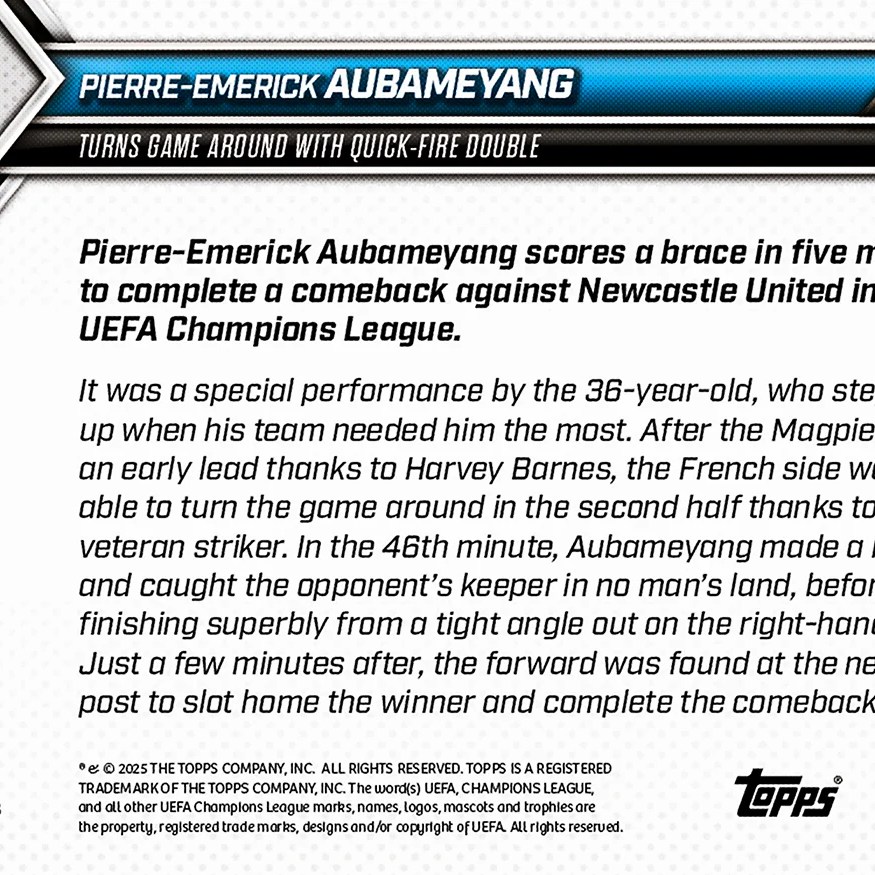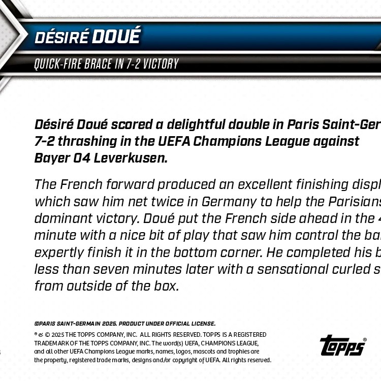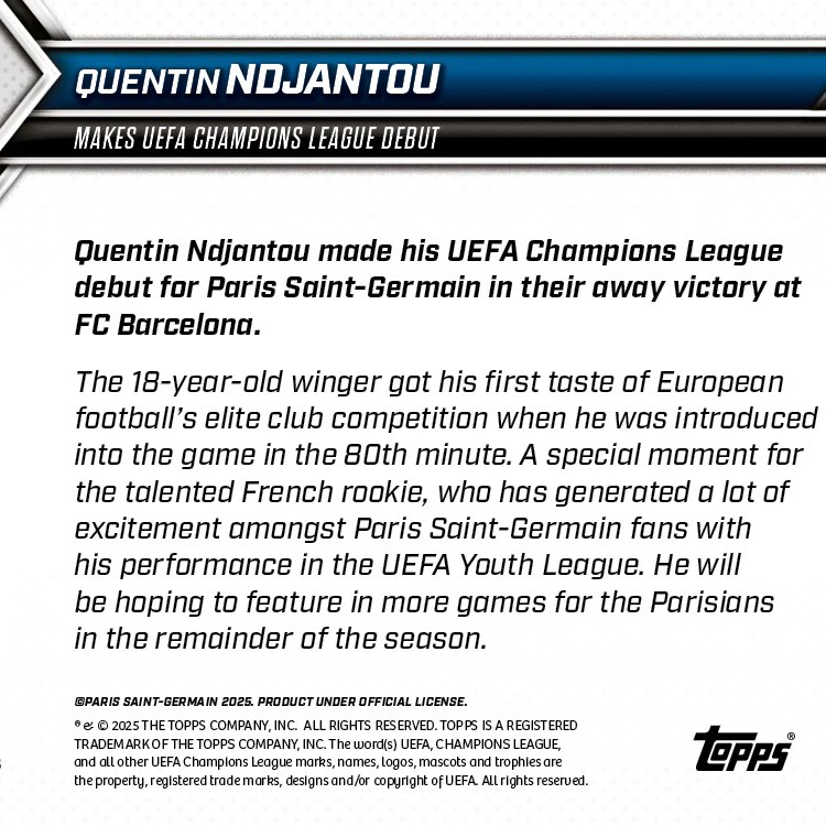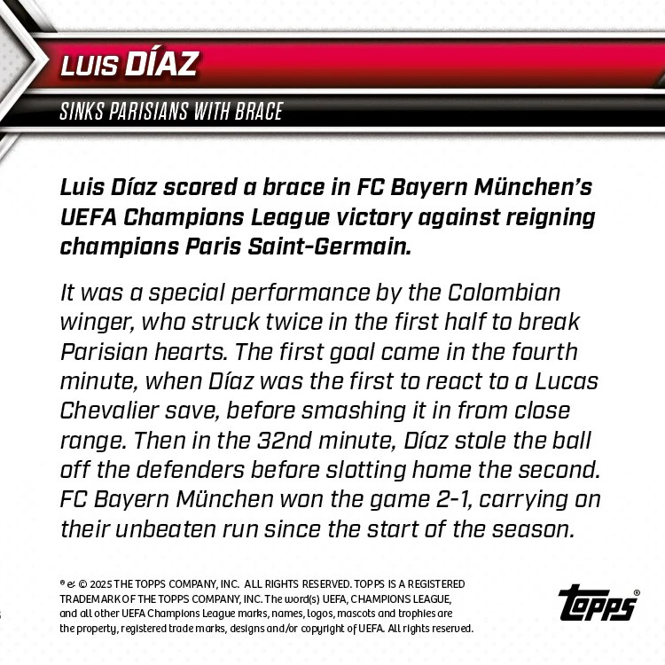 Ces galeries sont actualisées selon les cartes mises en vente sur le site de Topps. Il suffit de cliquer sur une photo pour l’agrandir et accéder au diaporama.
