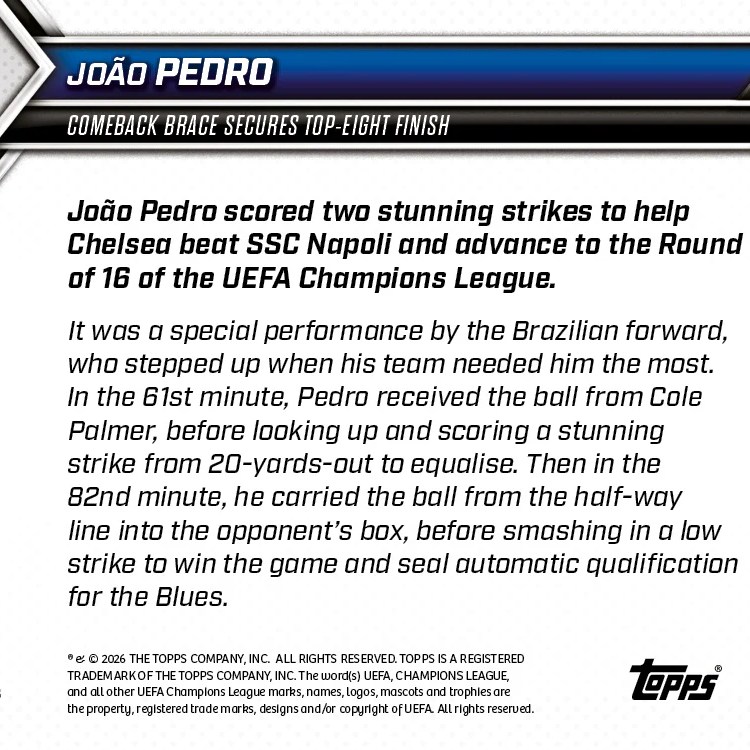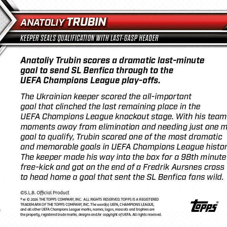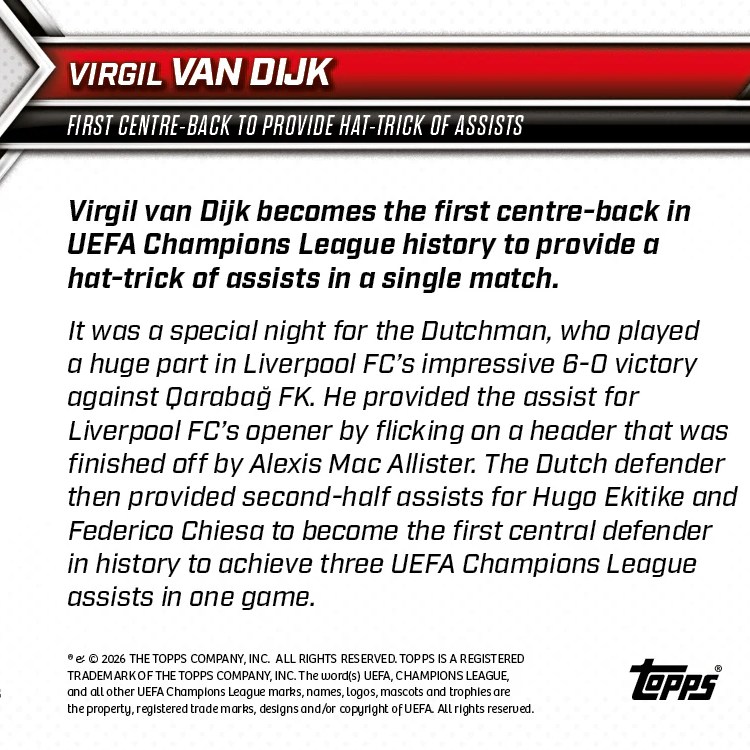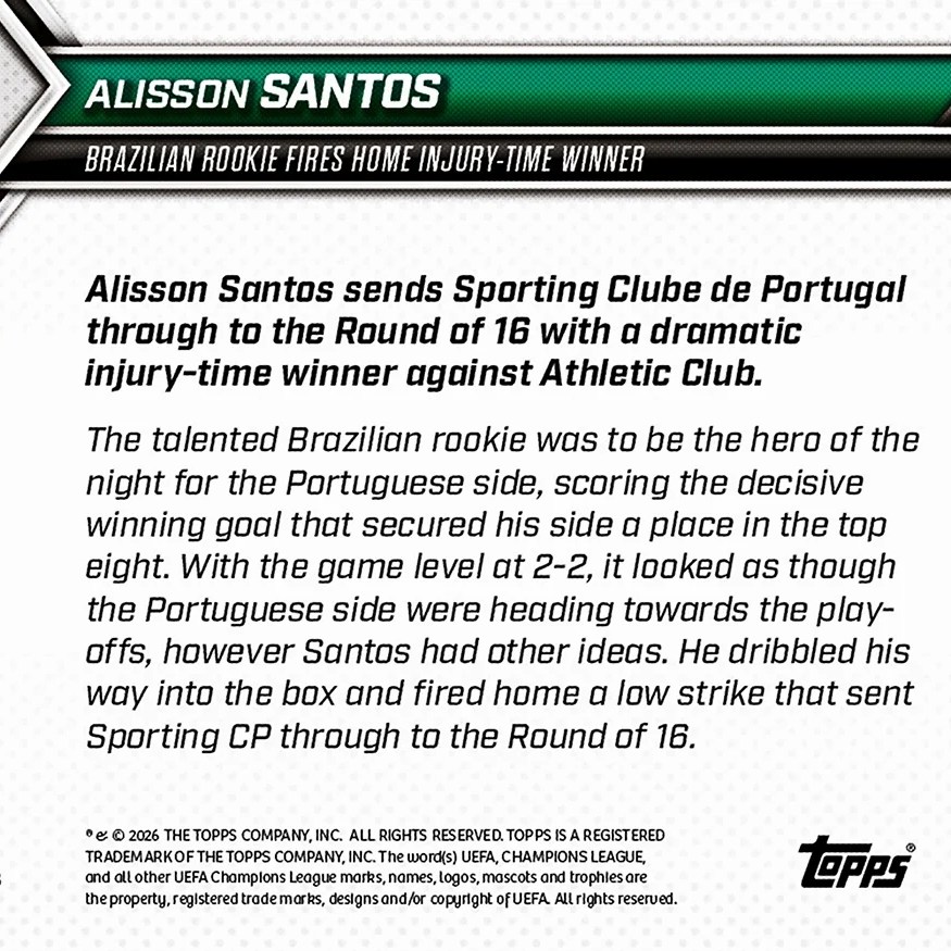 Ces galeries sont actualisées selon les cartes mises en vente sur le site de Topps. Il suffit de cliquer sur une photo pour l’agrandir et accéder au diaporama.