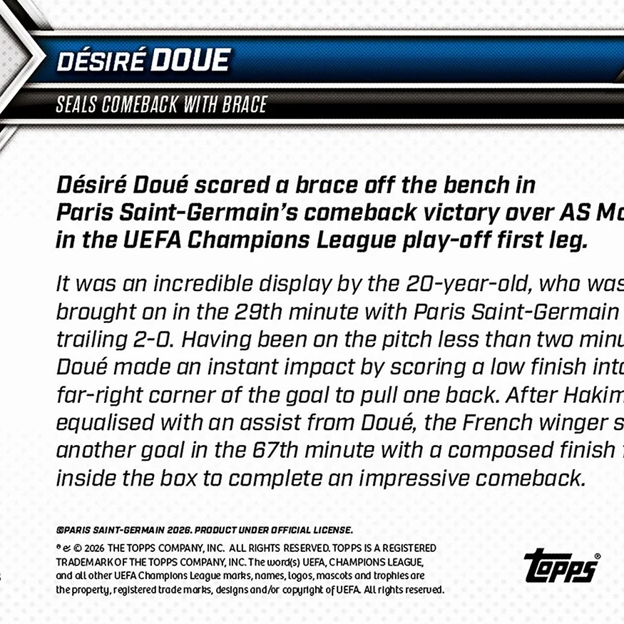 Ces galeries sont actualisées selon les cartes mises en vente sur le site de Topps. Il suffit de cliquer sur une photo pour l’agrandir et accéder au diaporama.